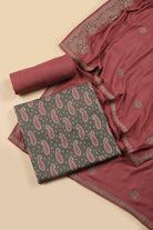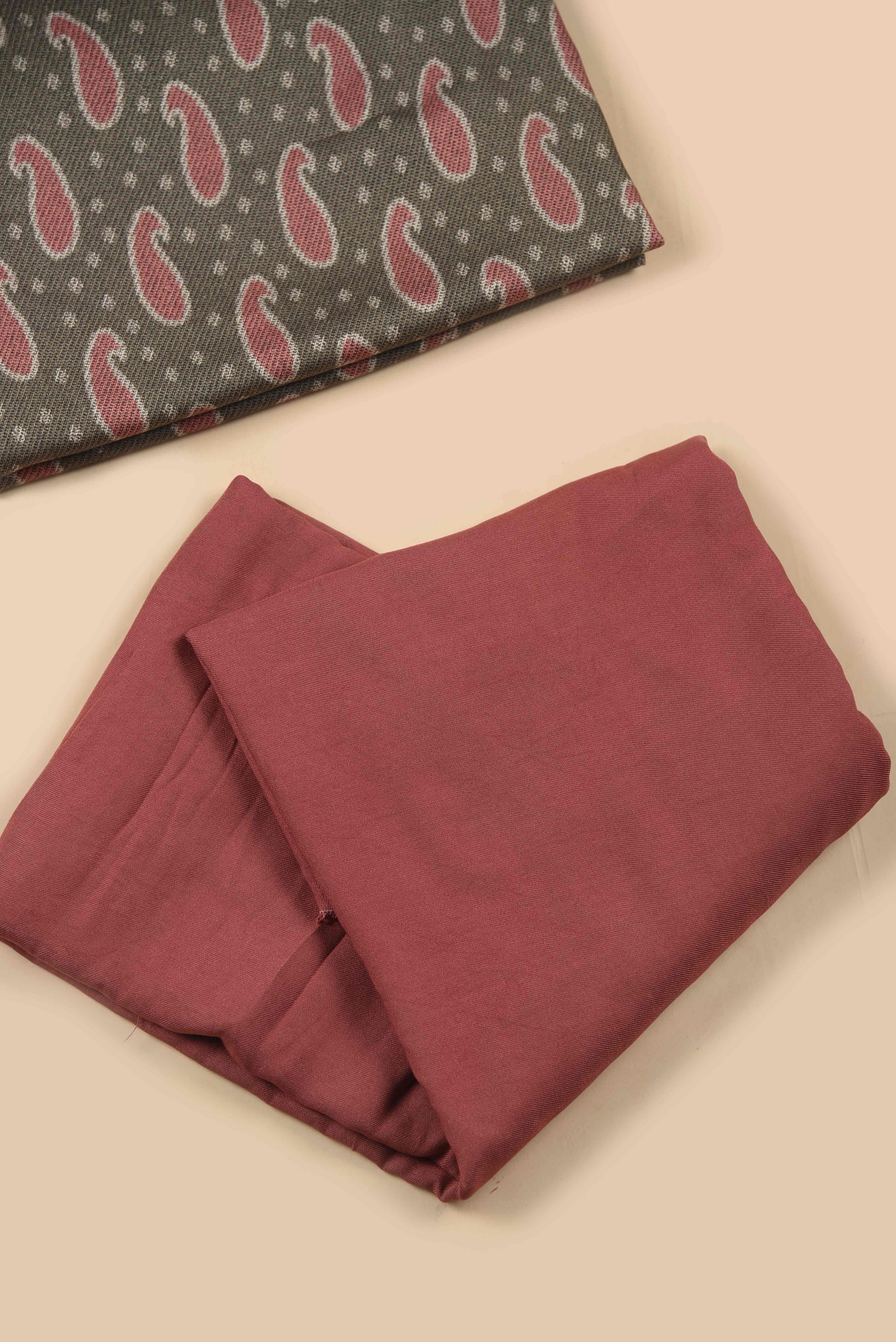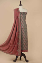 Green With Pink Winter Wear Printed Wool Spun Blend Unstitched Suit Fabric Set With Wool Spun Blend Embroidered Dupatta