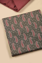 Elevate your winter wardrobe with this sophisticated unstitched suit fabric set, featuring a refined Green base complemented by striking purple prints.