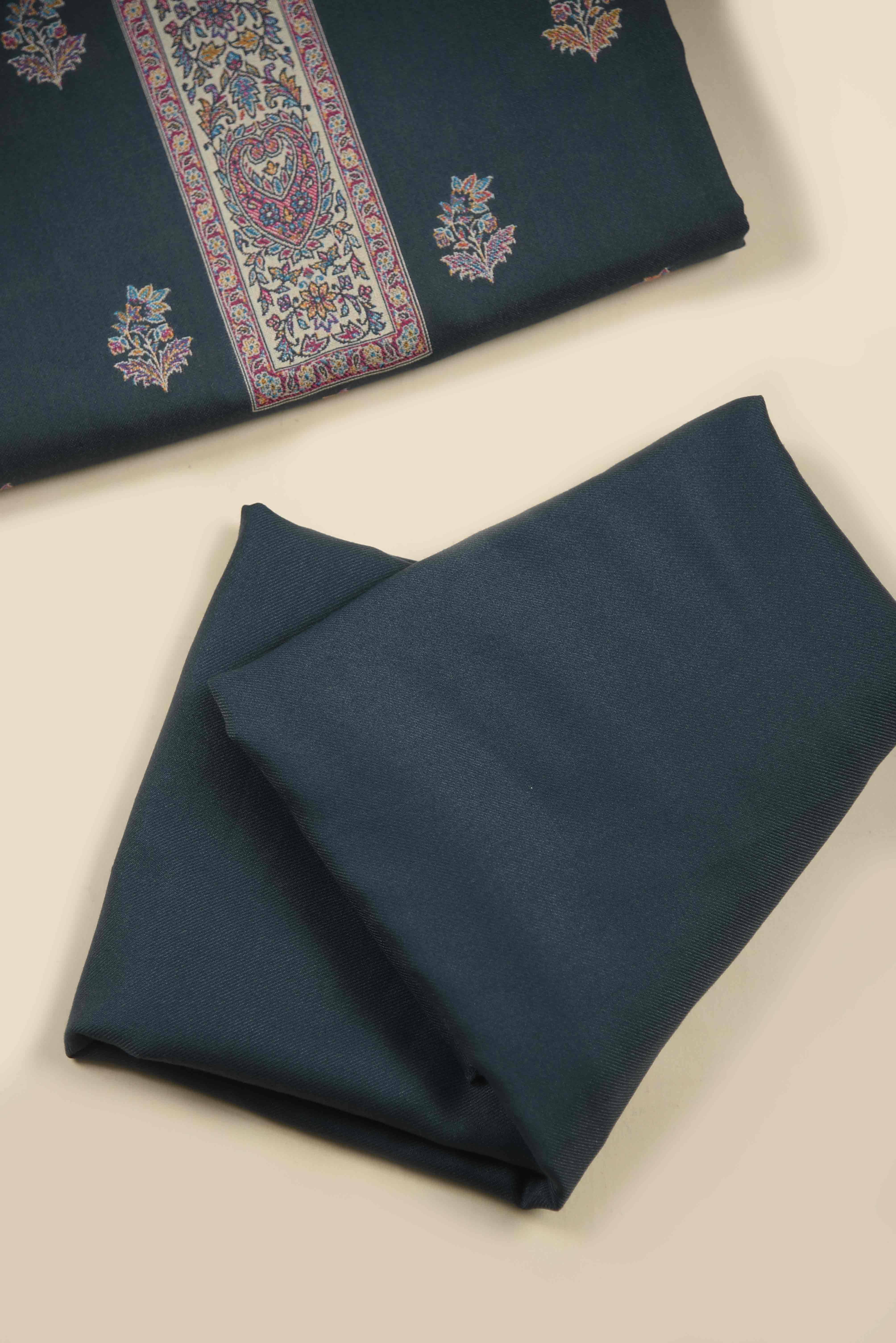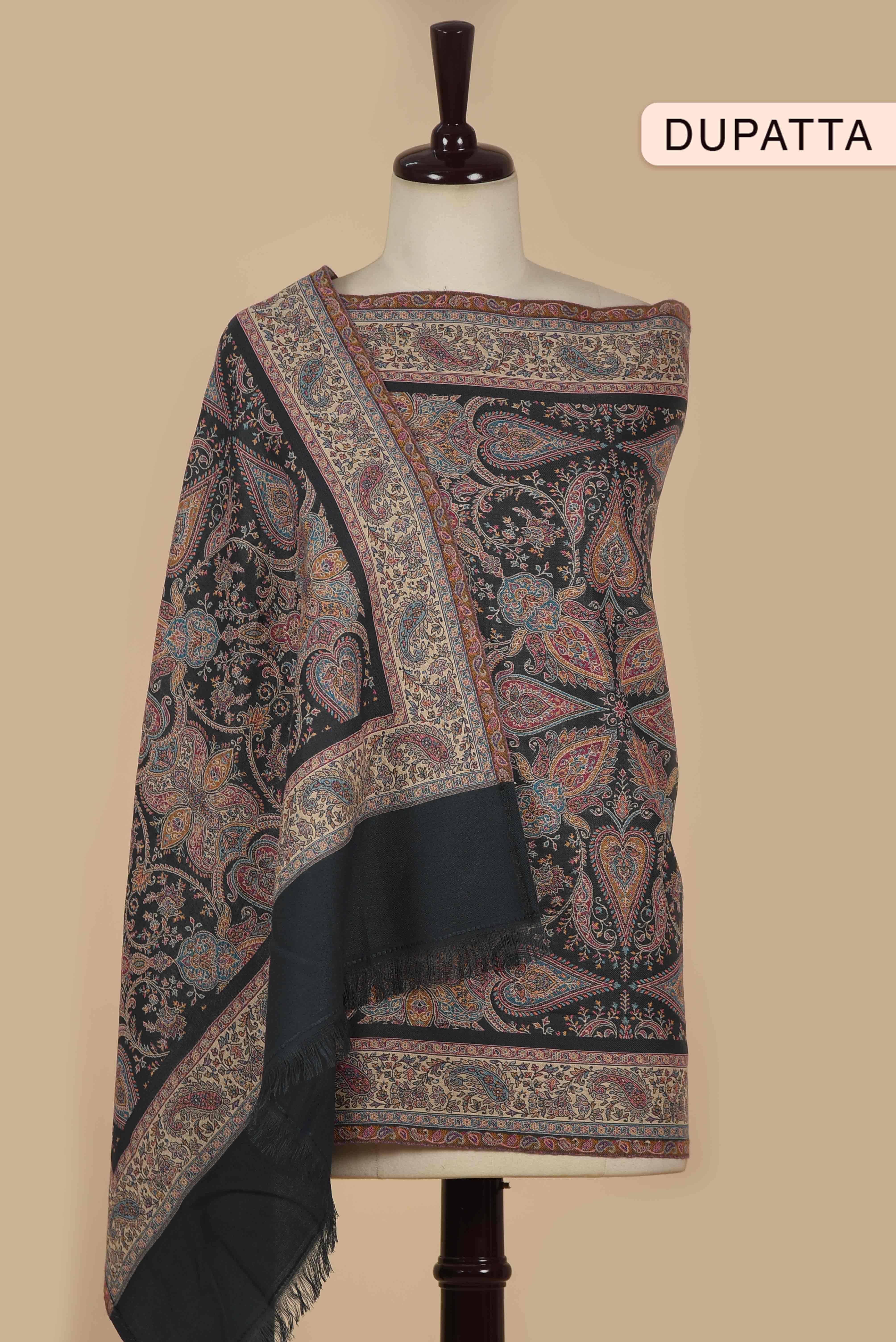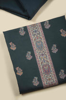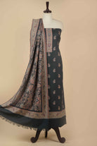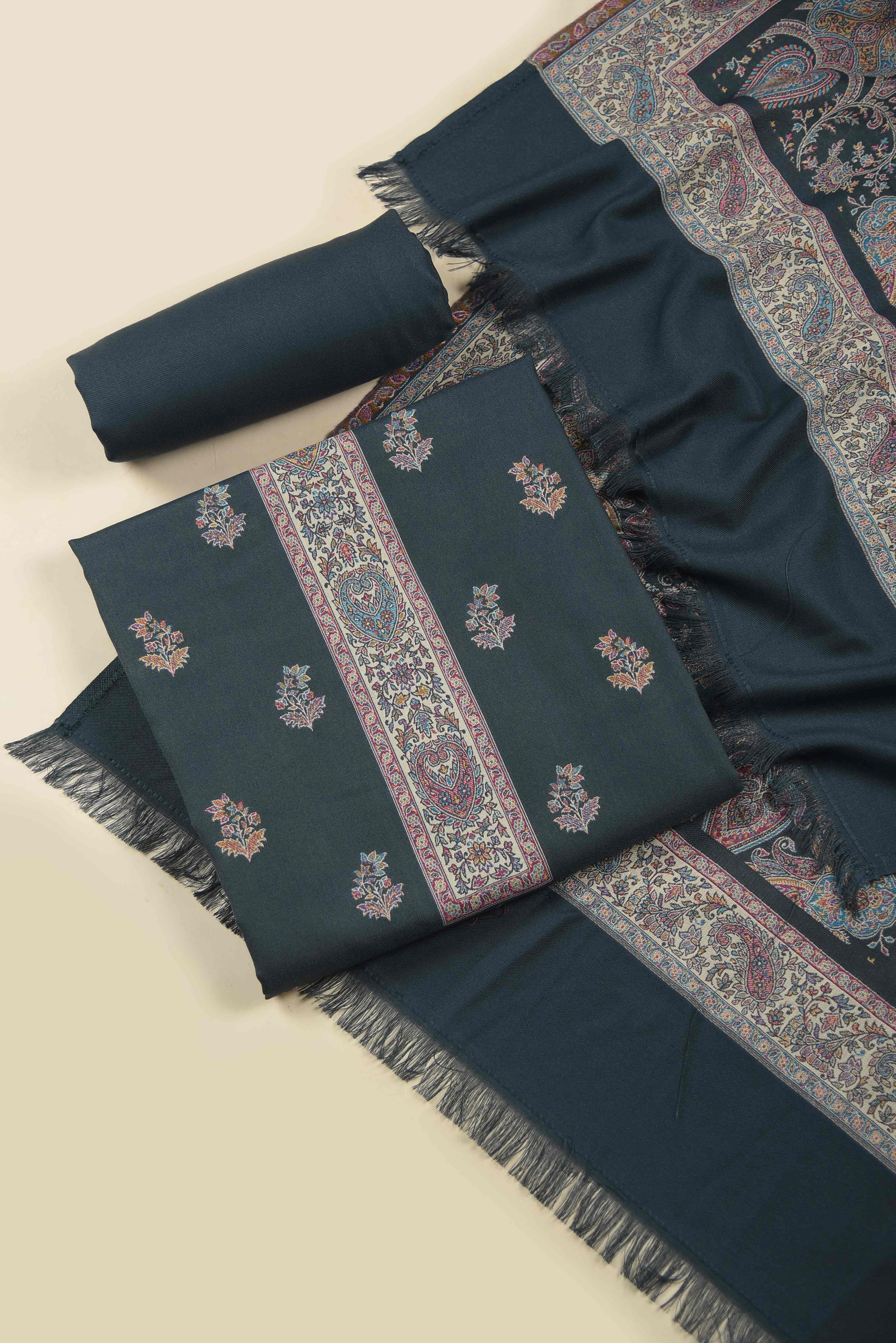 Grey Winter Wear Jamdani Wool Spun Blend Unstitched Suit Fabric Set With Jamdani Wool Spun Blend Stole