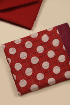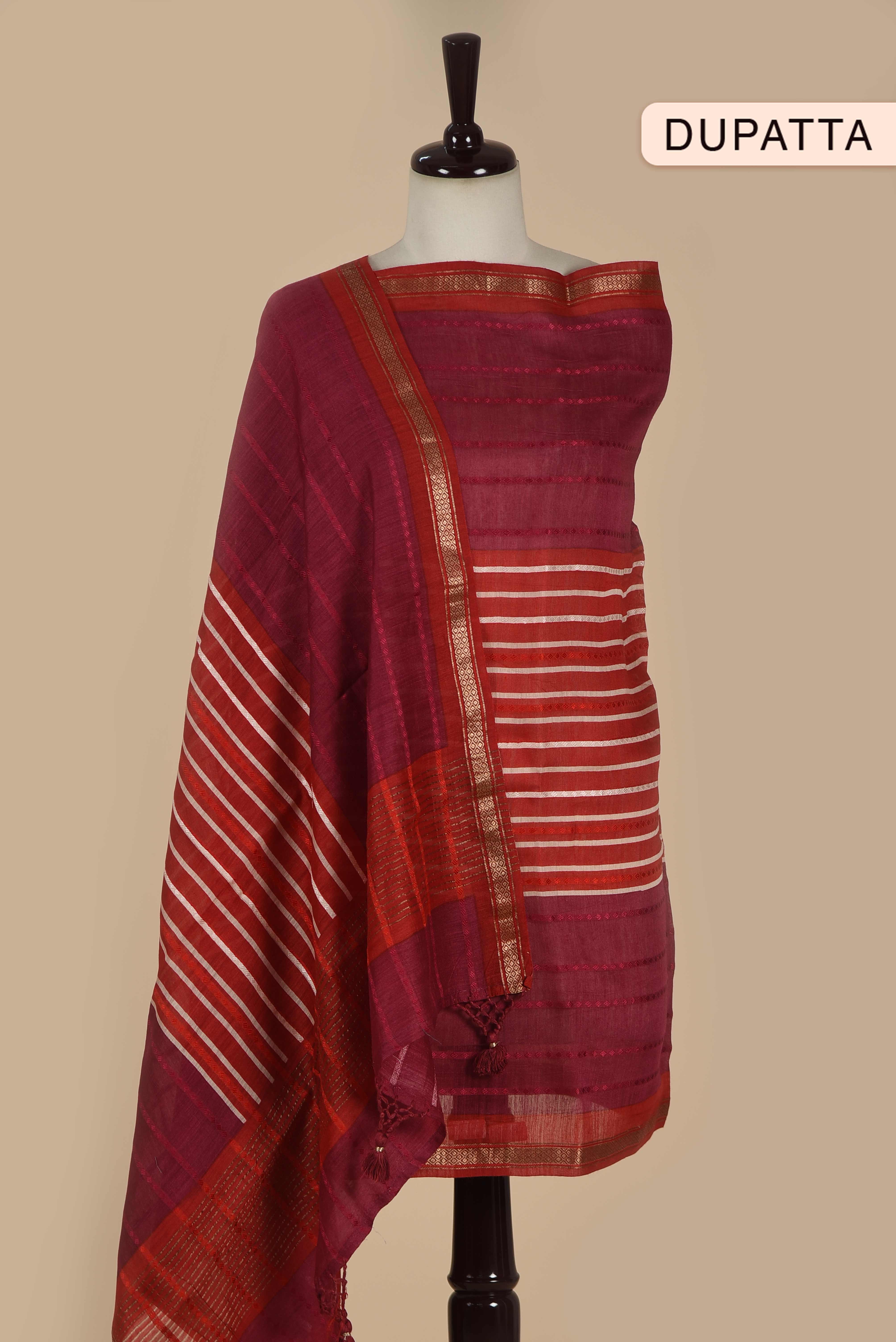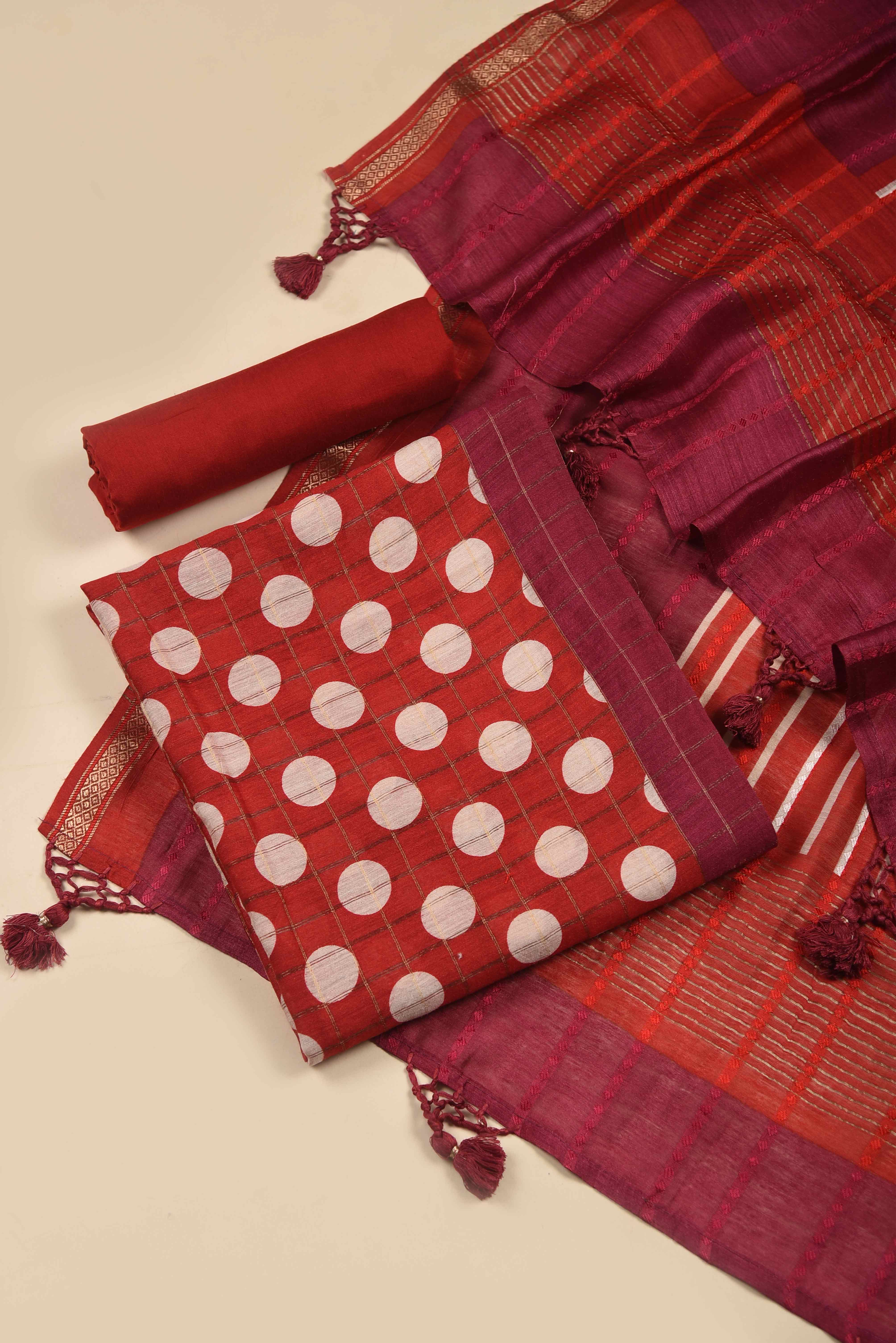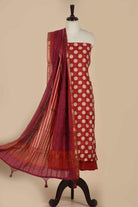 Red With Wine Handloom Silk Woven With Printed Unstitched Suit Fabric Set With Handloom Silk Dupatta