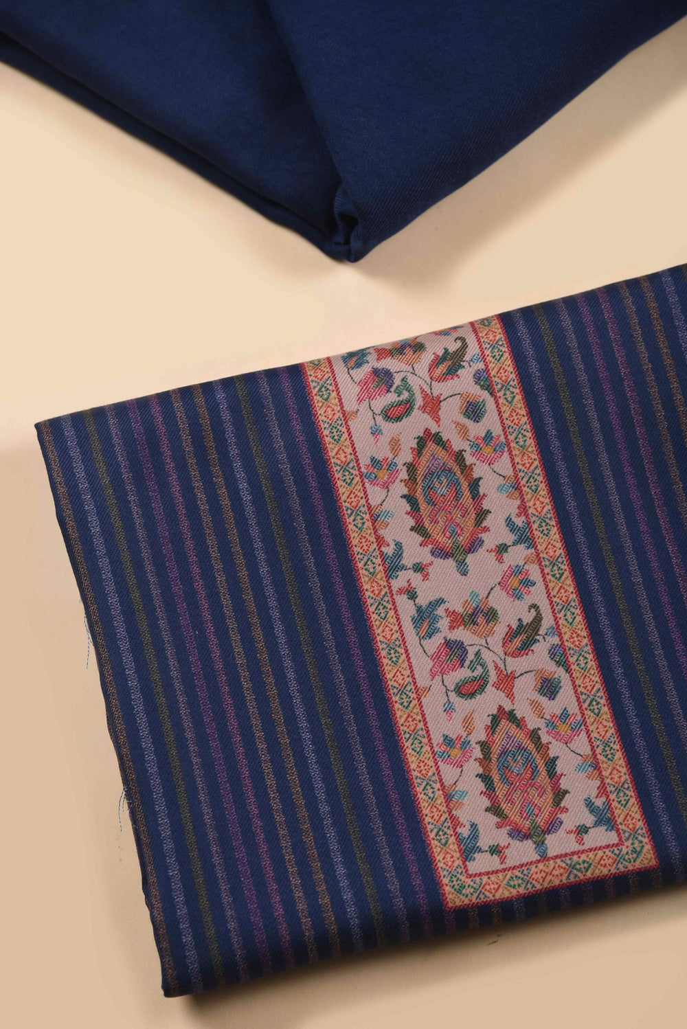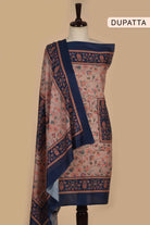 Blue Winter Wear Wool Spun Printed Unstitched Suit Fabric Set With Wool Blend Printed Dupatta