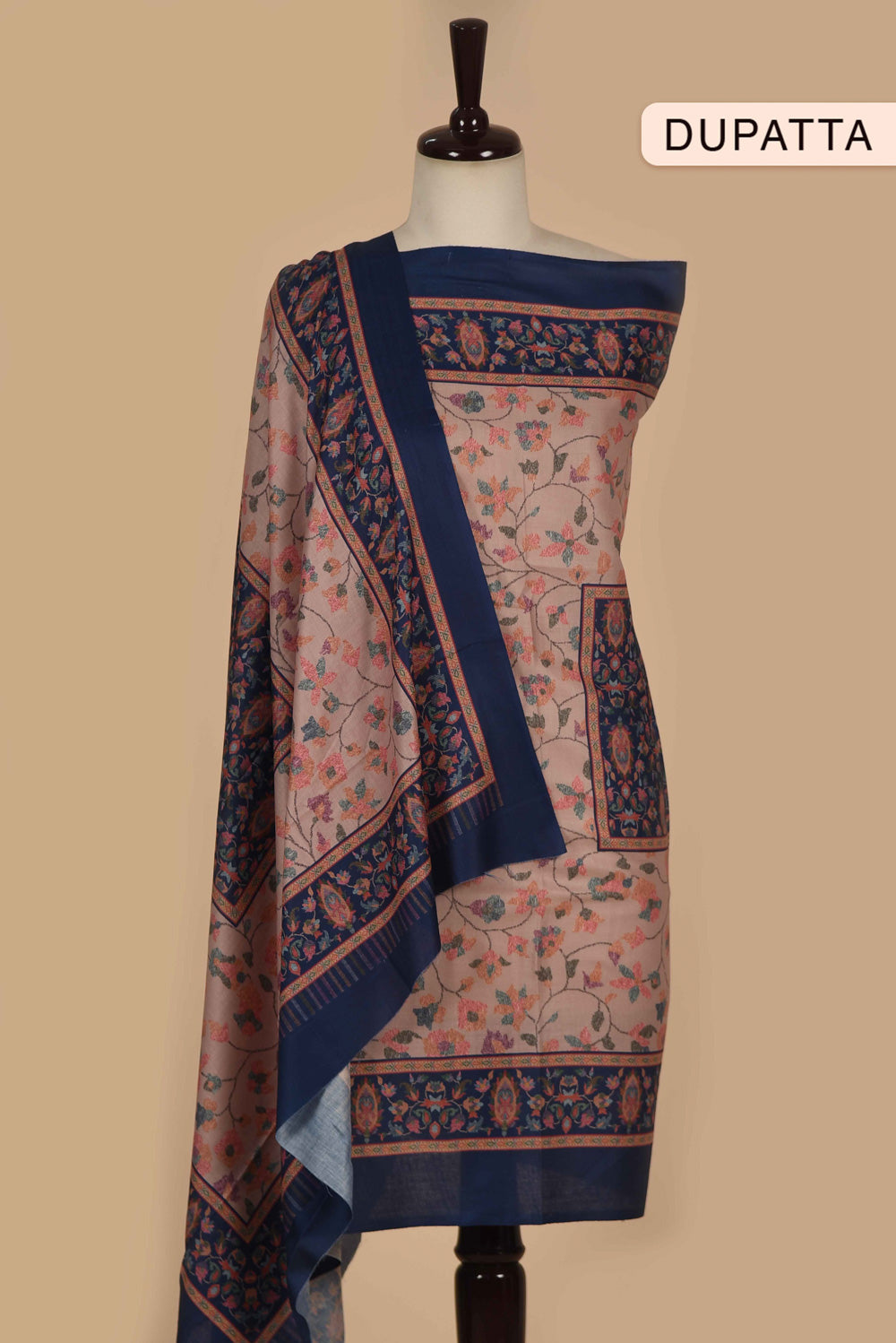 - The unstitched fabric allows for personalized tailoring, while the coordinating wool blend printed dupatta complements the ensemble perfectly.