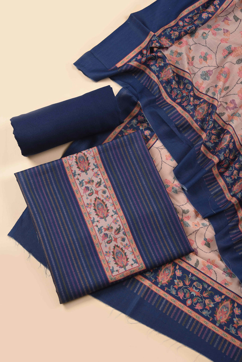 (1) Shirt Fabric in Wool Spun Blend, (1) Bottom Fabric in Wool Spun Blend, (1) Dupatta Fabric In Wool Spun Blend |