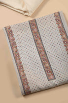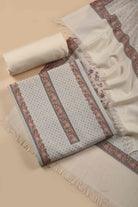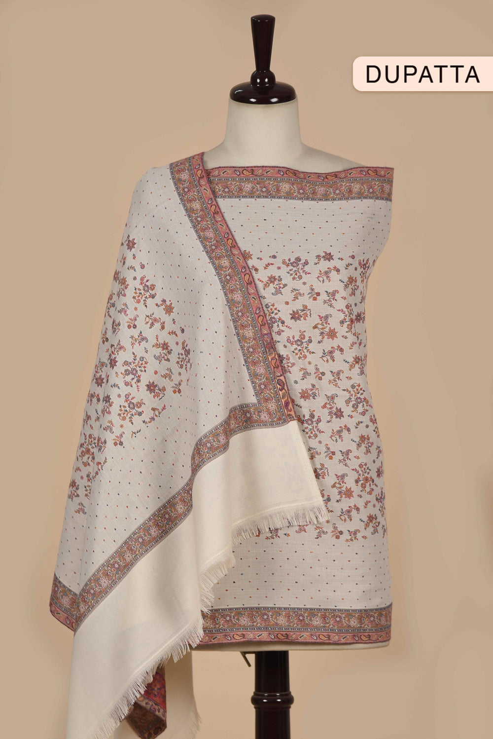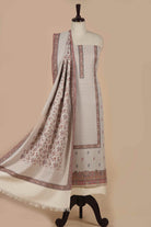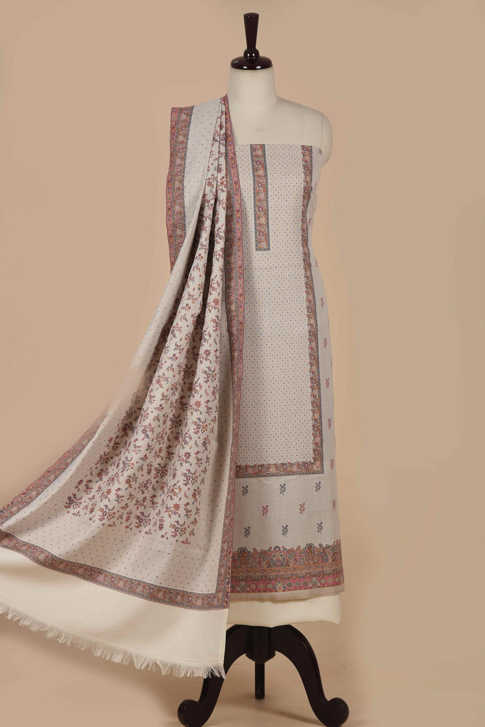 Cream Winter Wear Wool Spun Blend Woven Jamdaani Unstitched Suit Fabric Set With Wool Spun Blend Stole