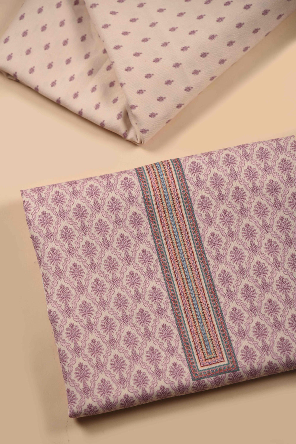 - Elevate your winter wardrobe with this sophisticated unstitched suit fabric set, featuring a luxurious wool blend in cream with striking pink accents.