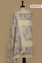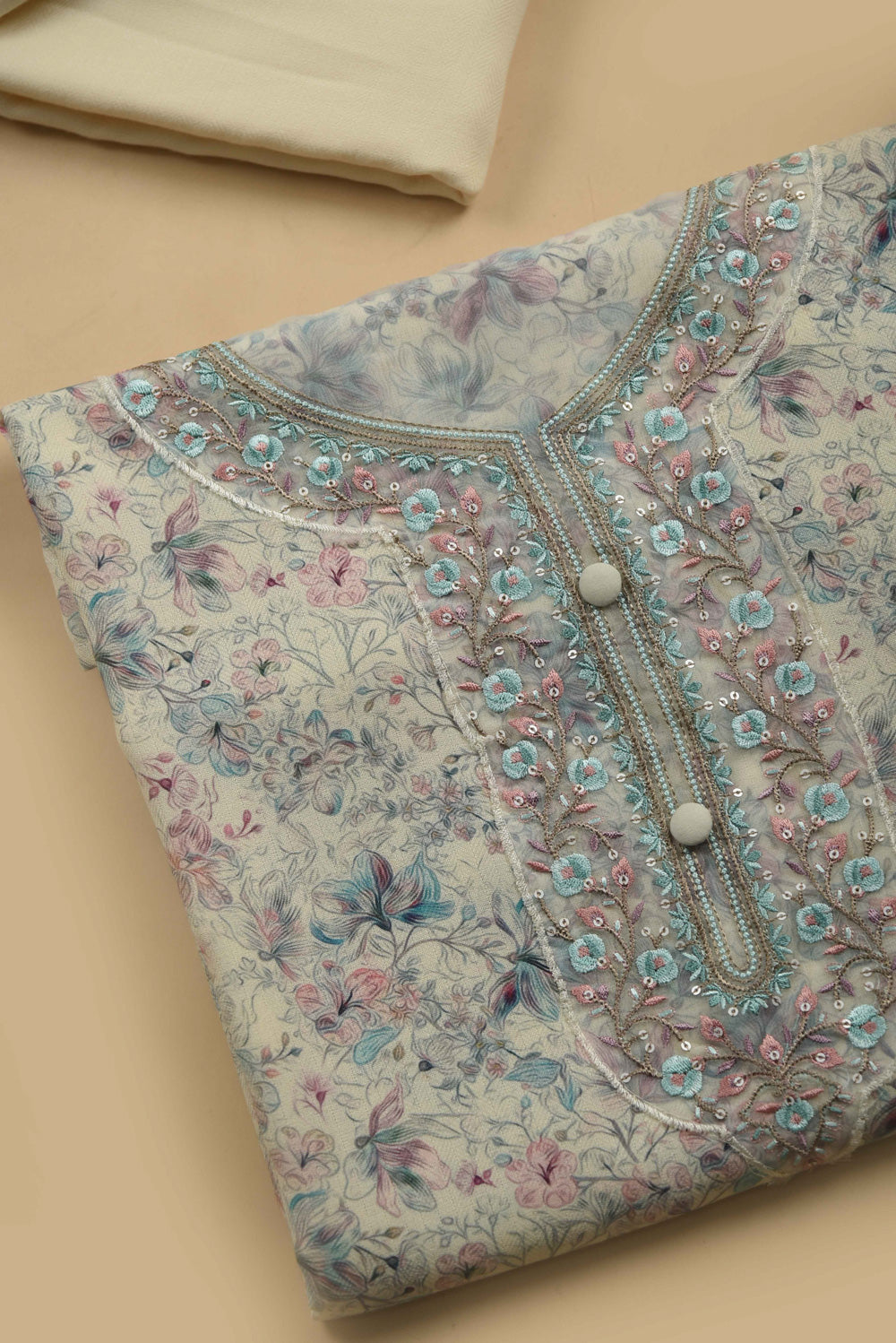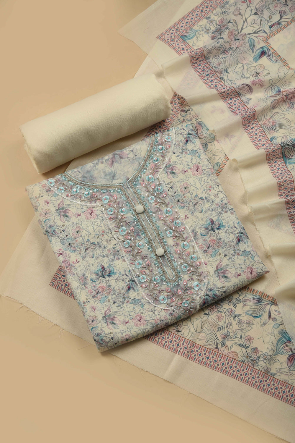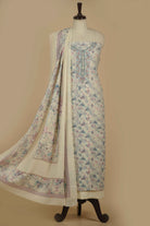 Off White Winter Wear Wool Spun Blend Printed With Embroidered Unstitched Suit Fabric Set With Wool Spun Blend Printed Dupatta
