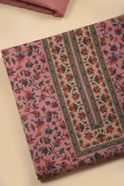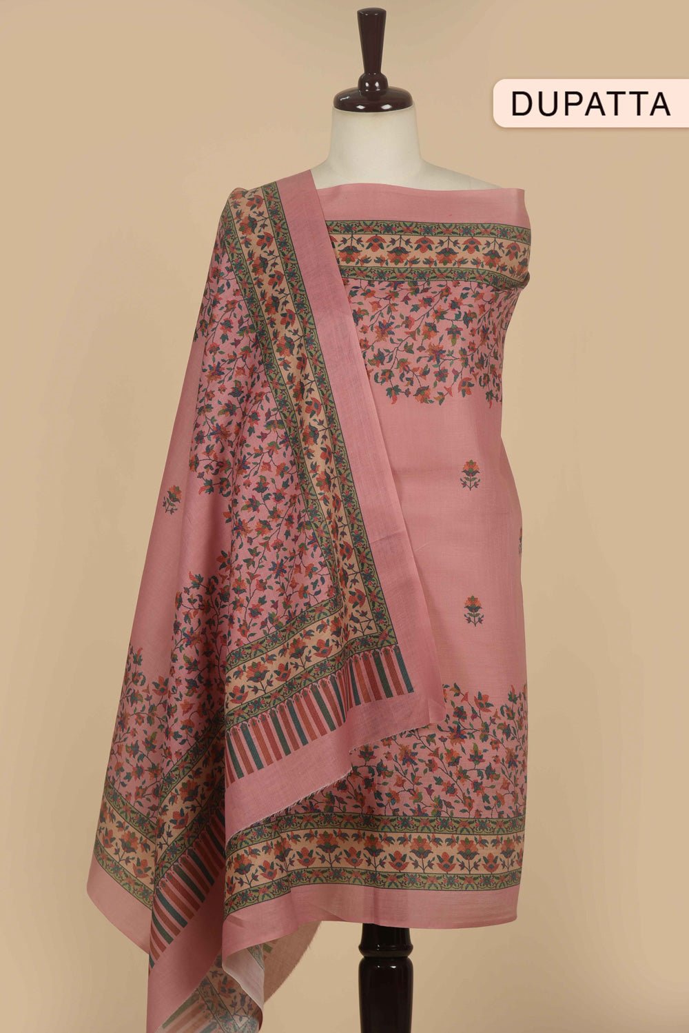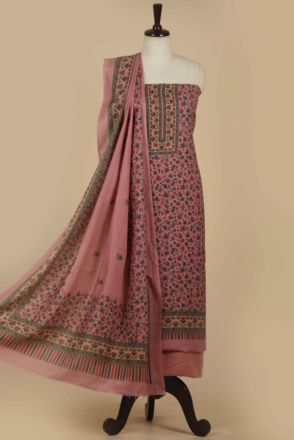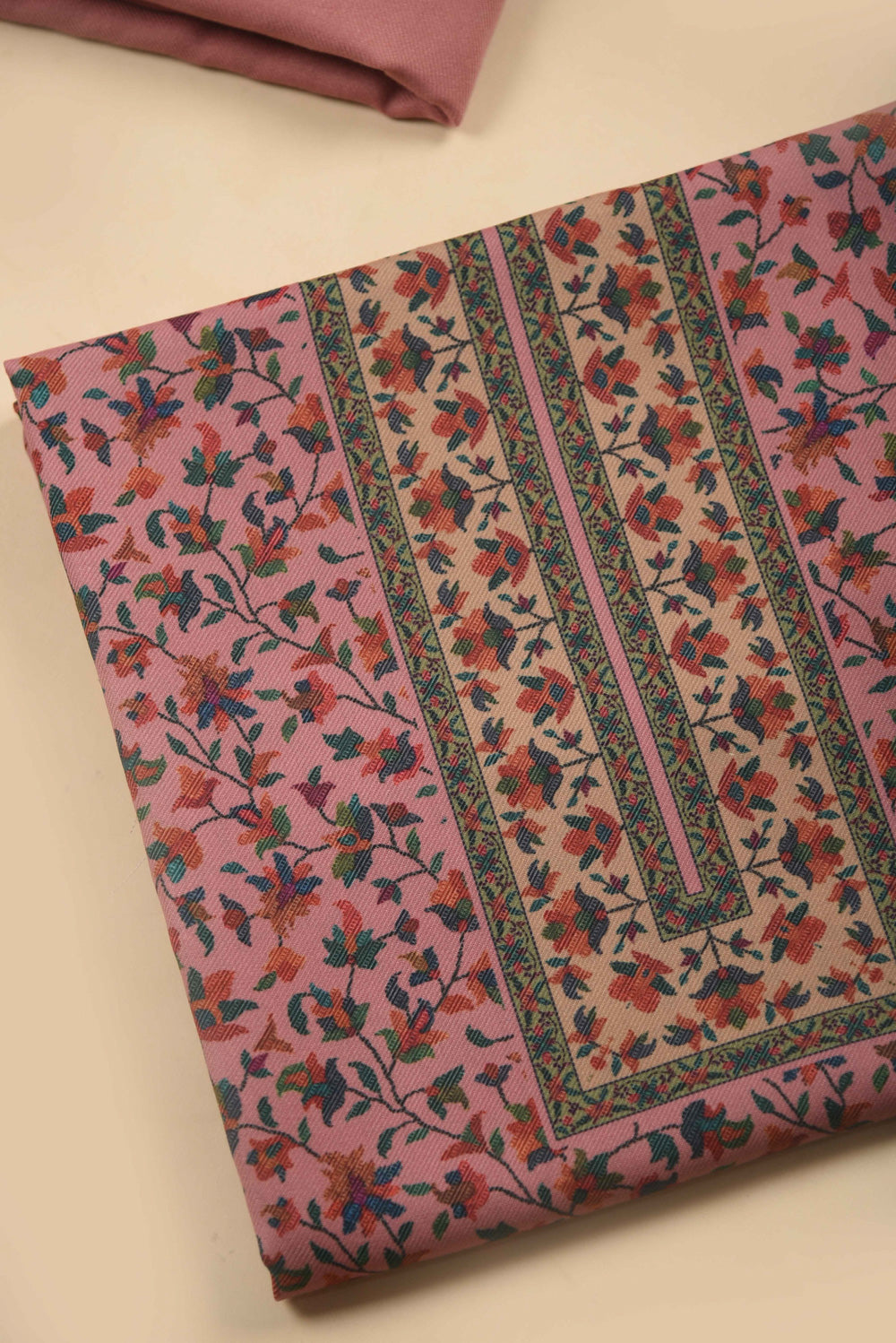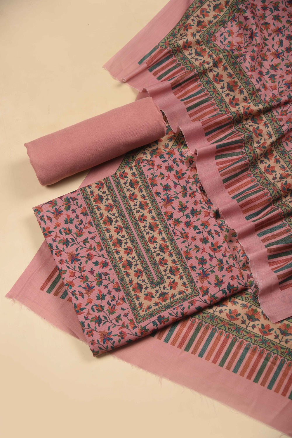 Pink Winter Wear Wool Spun Blend Printed Unstitched Suit Fabric Set With Wool Spun Blend Printed Dupatta