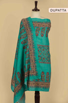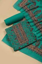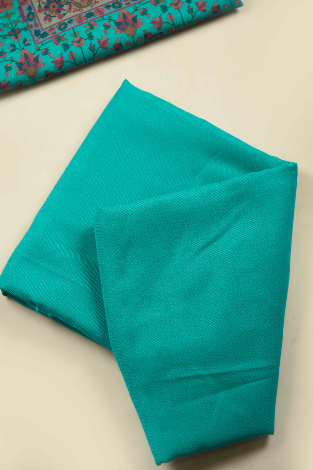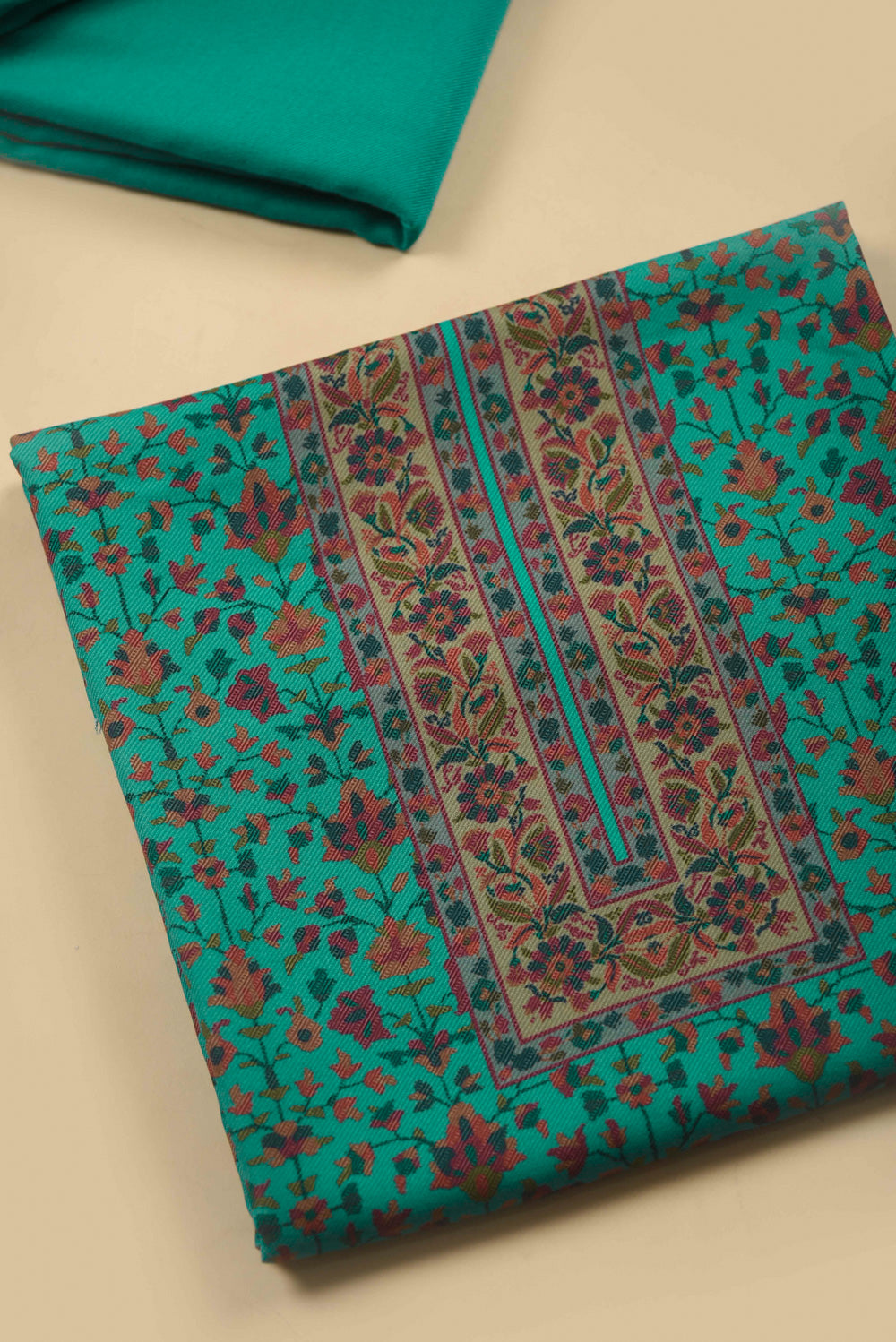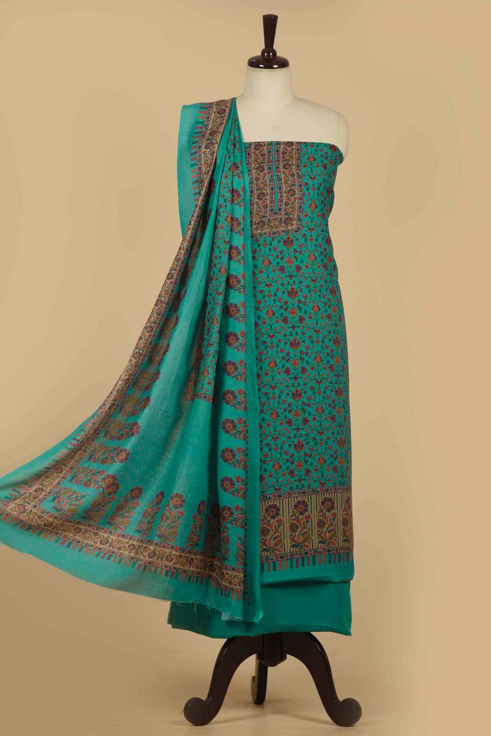 Turquoise Winter Wear Wool Spun Blend Printed Unstitched Suit Fabric Set With Wool Spun Blend Printed Dupatta