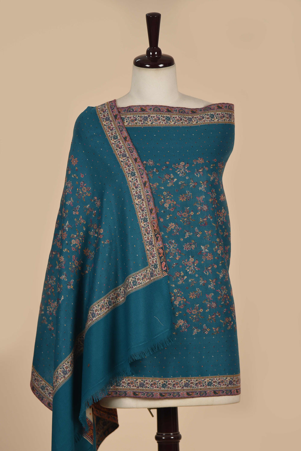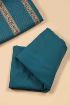 Turquoise Winter Wear Wool Spun Blend Woven Jamdaani Unstitched Suit Fabric Set With Wool Spun Blend Stole
