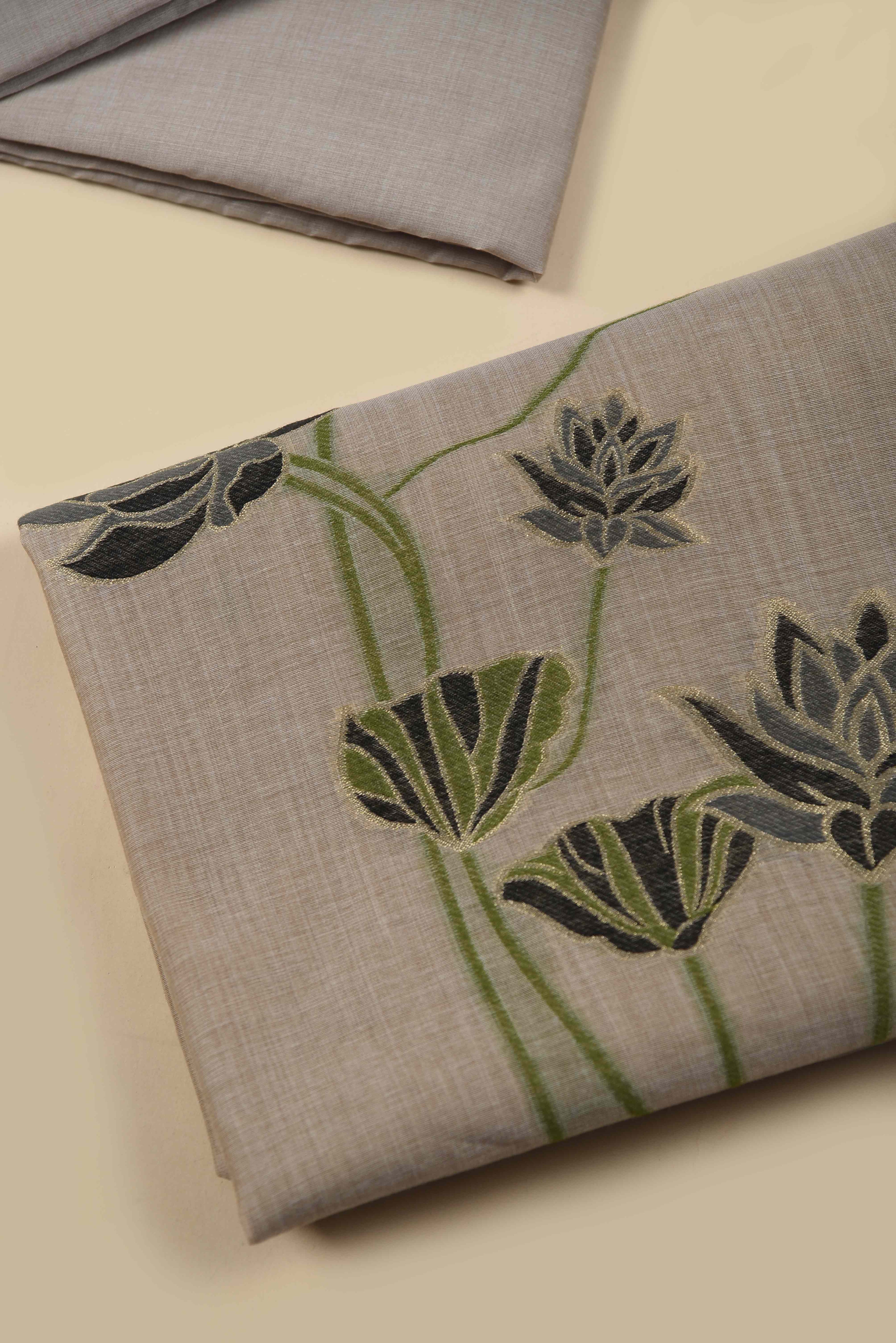 Beige Chanderi Jamdani Woven Unstitched Suit Fabric Set With Chanderi Woven Dupatta