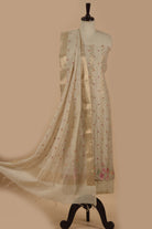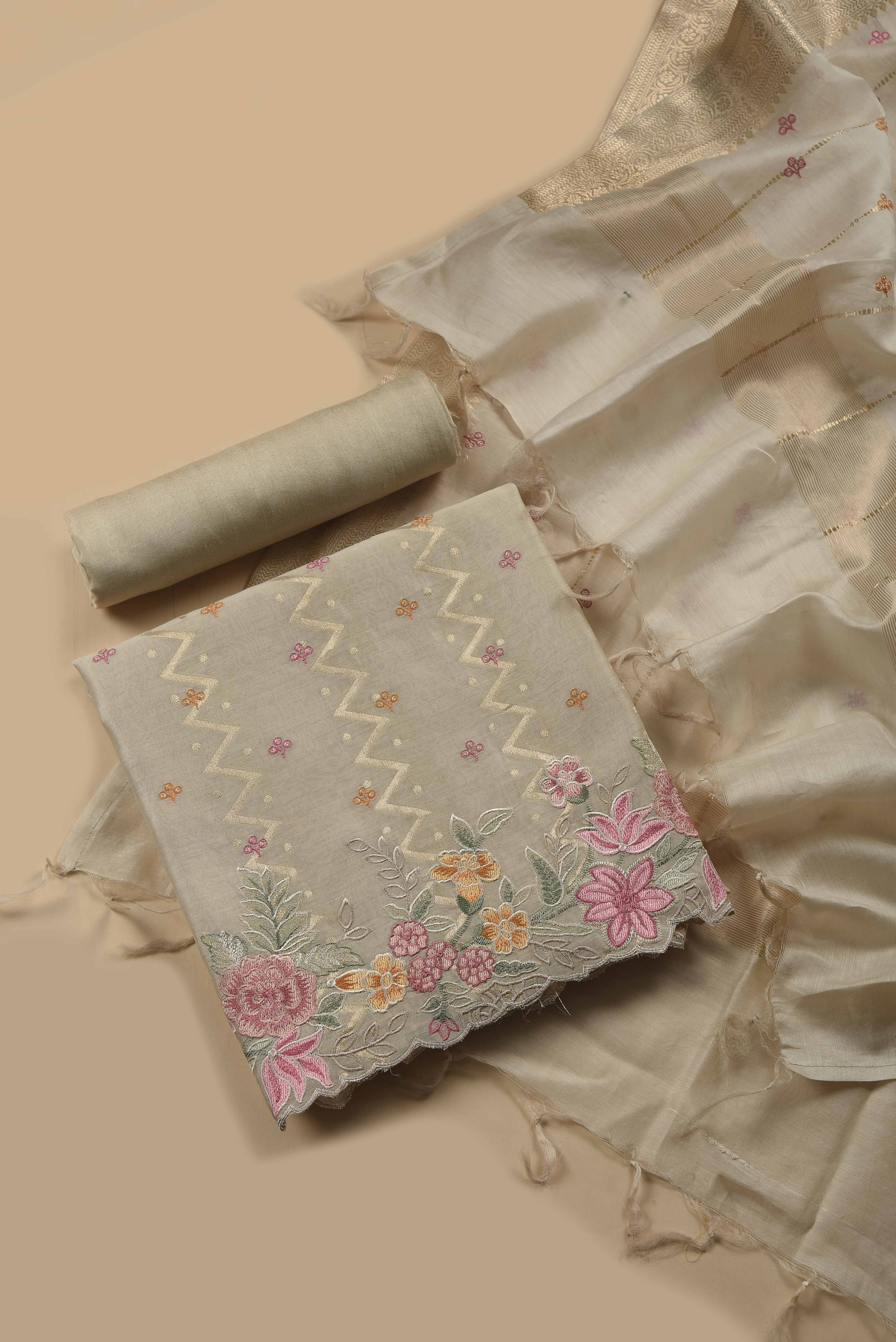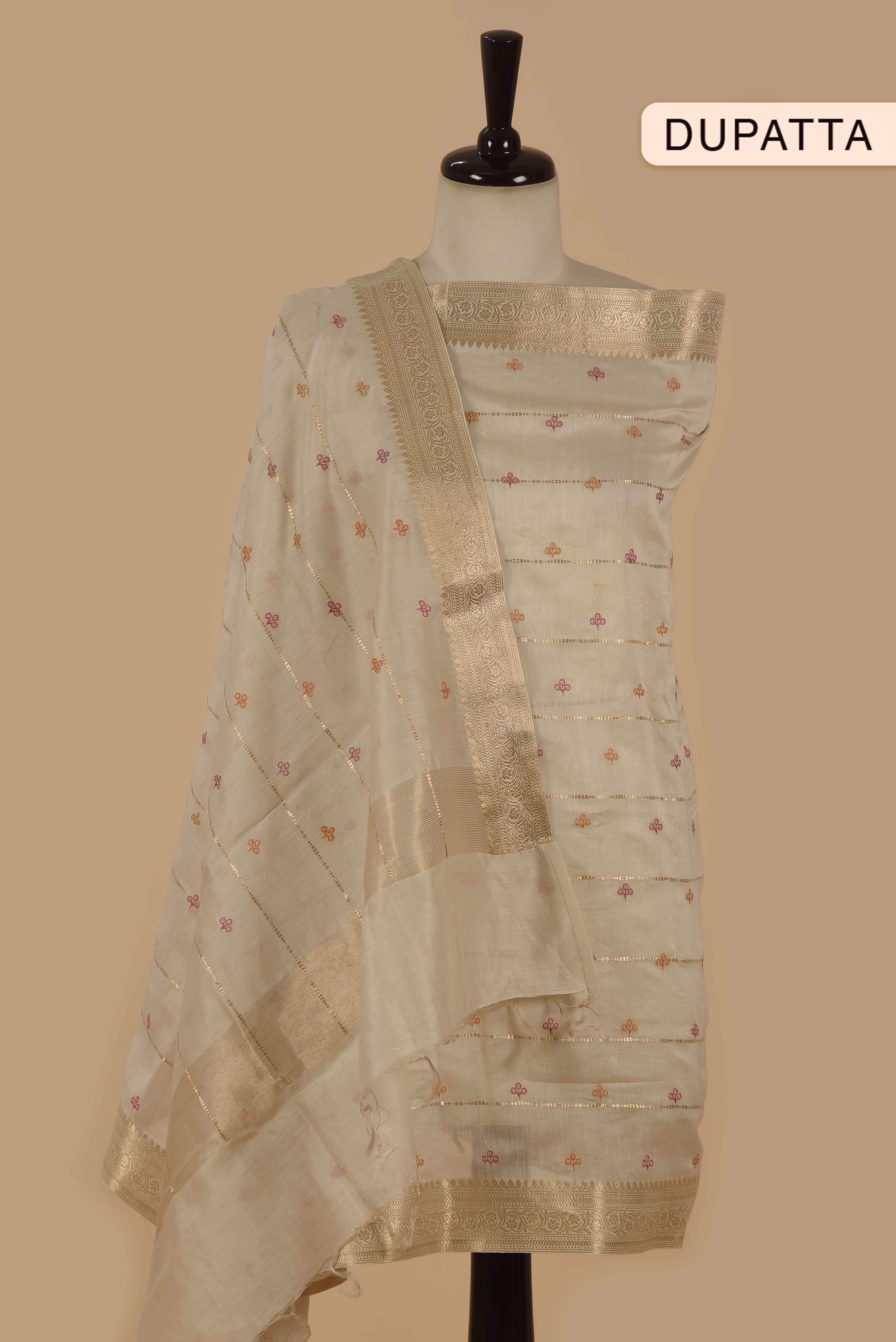 Beige Chanderi Silk Woven & Embroidered Suit Fabric Set with Chanderi Dupatta