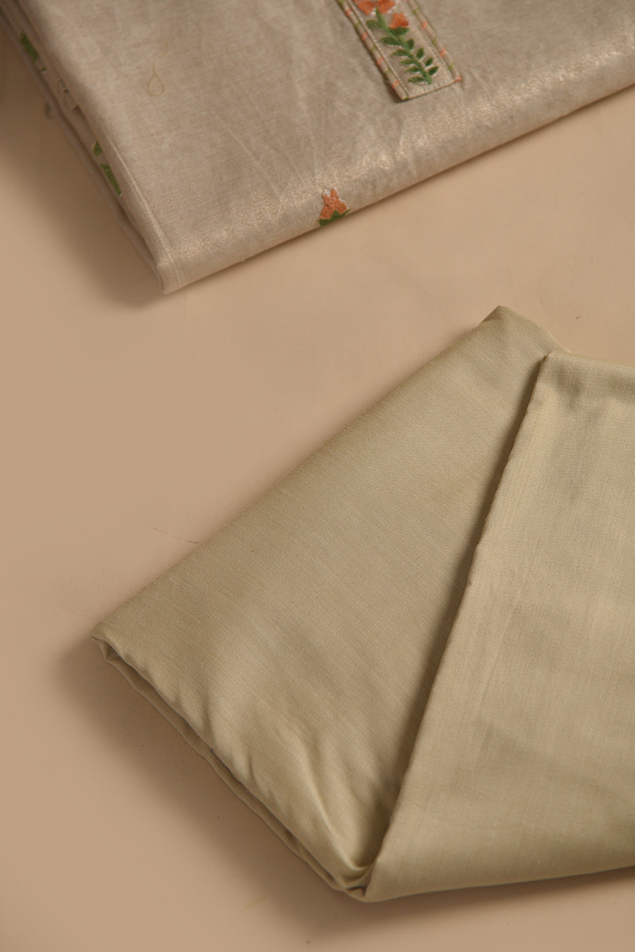 Shirt - Chanderi tissue, Bottom - Cotton silk, Dupatta - Chanderi Tissue |