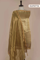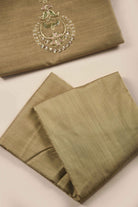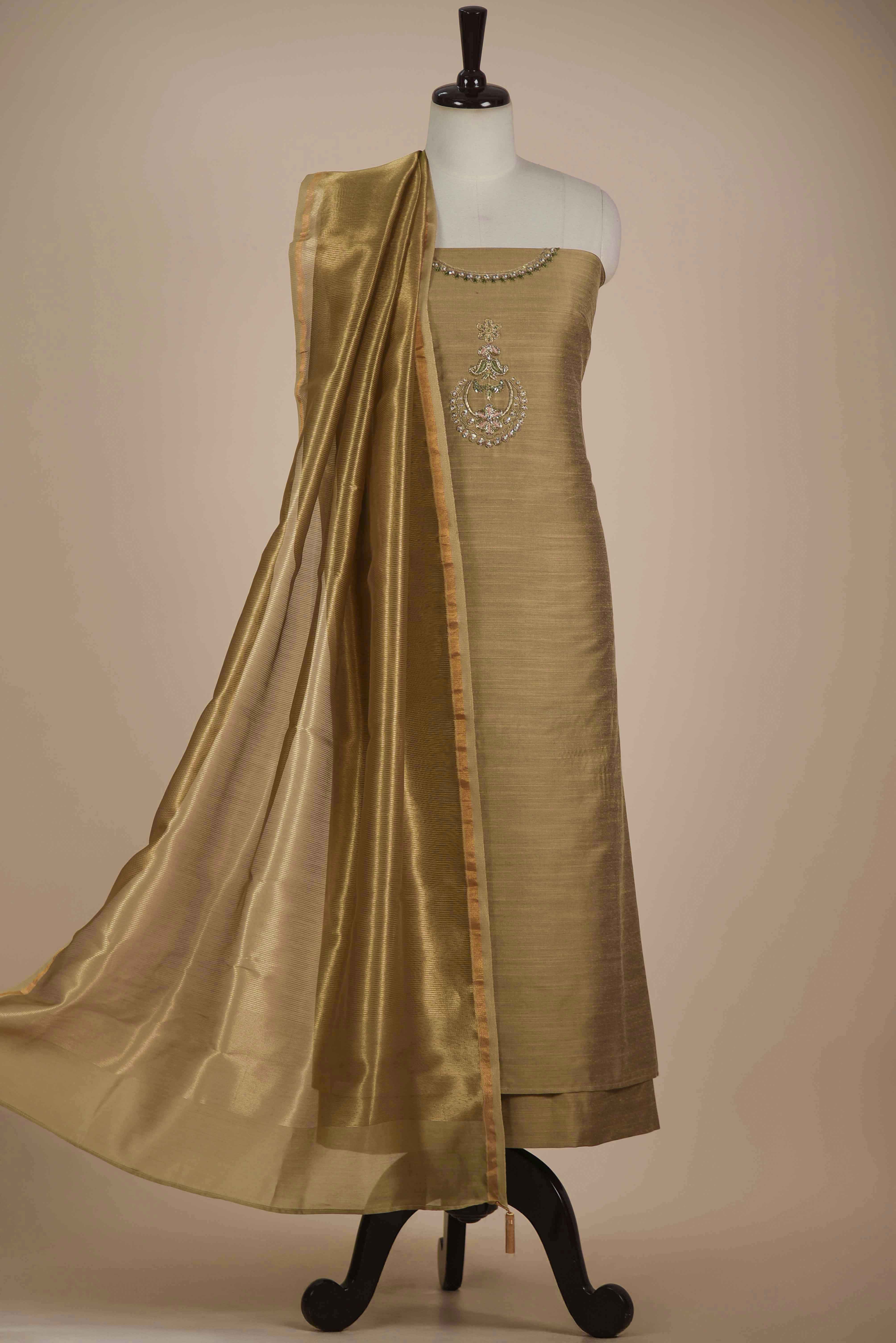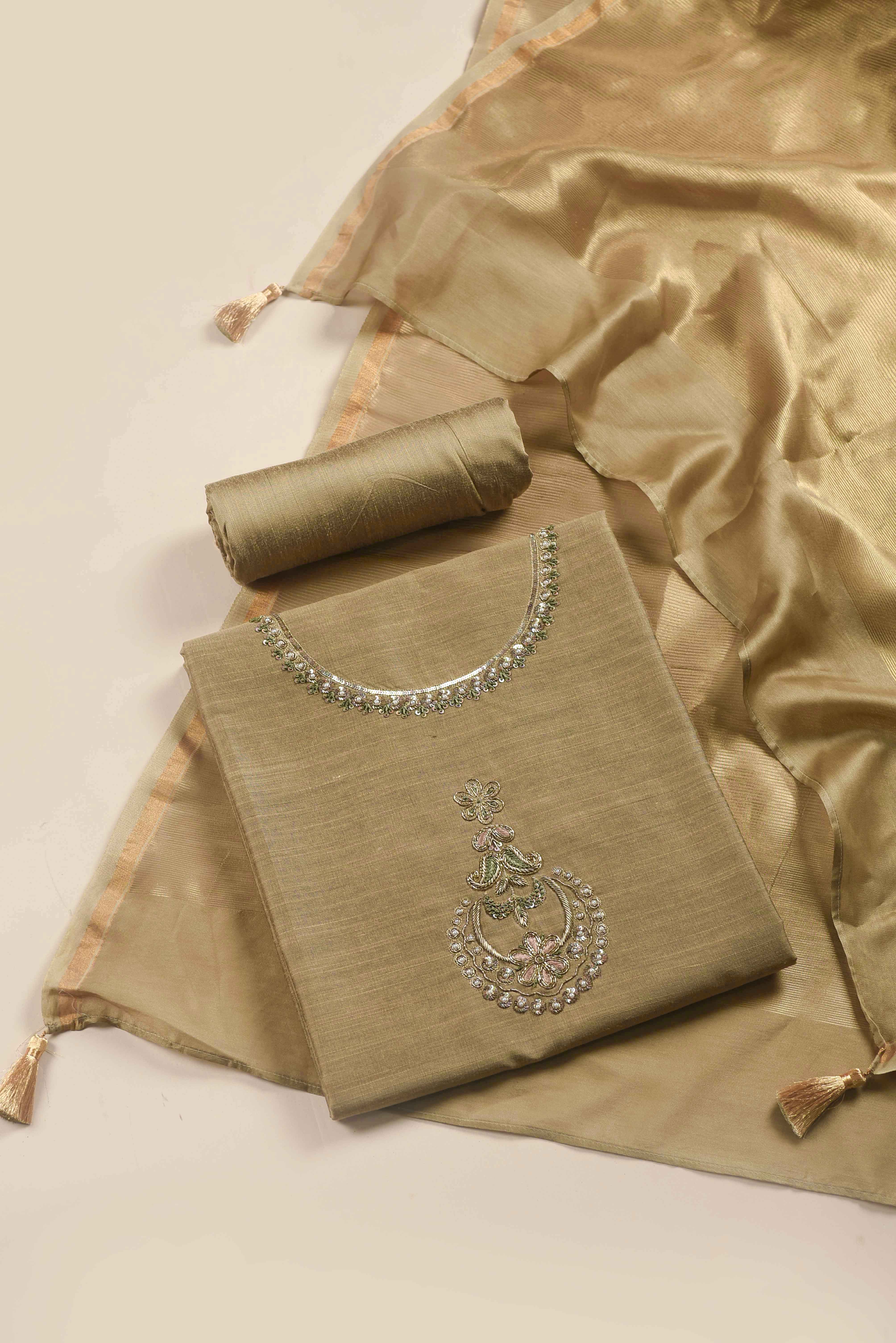 Beige Cotton Silk Embroidered Unstitched Suit Fabric Set With Organza Zari Dupatta