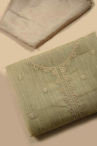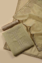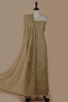 Beige Crushed Silk Viscose Embroidered Unstitched Suit Fabric Set with Silk Dupatta