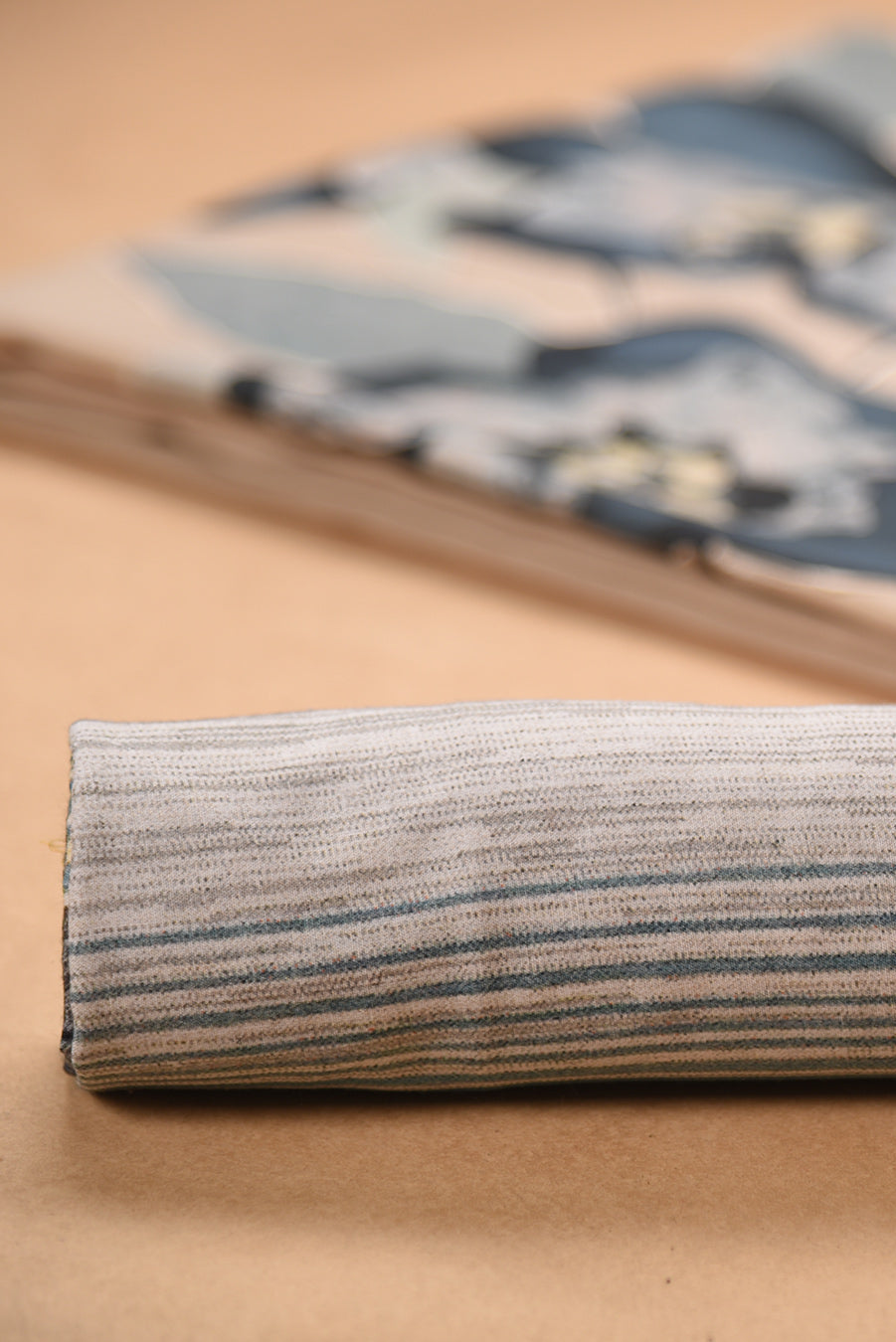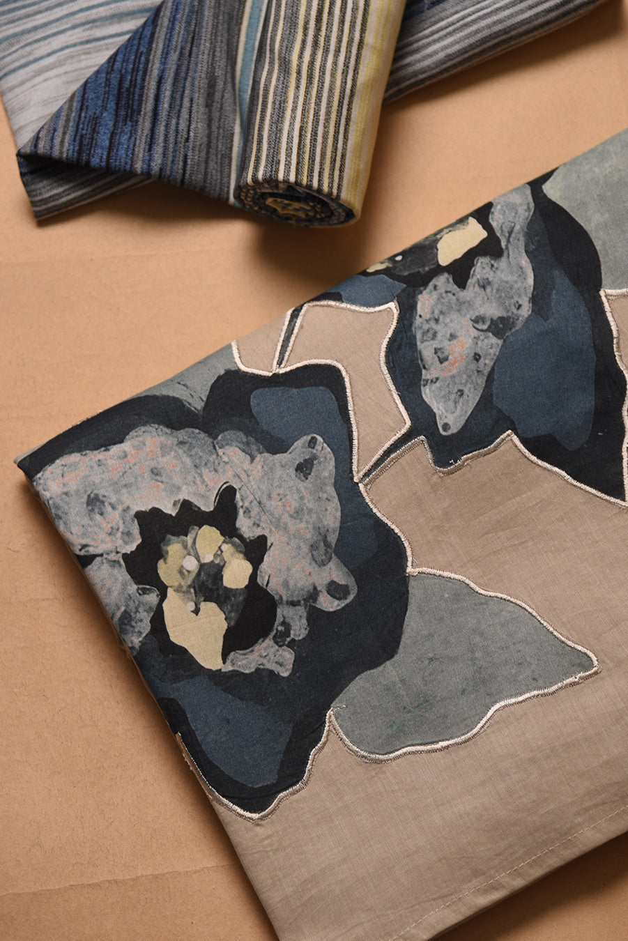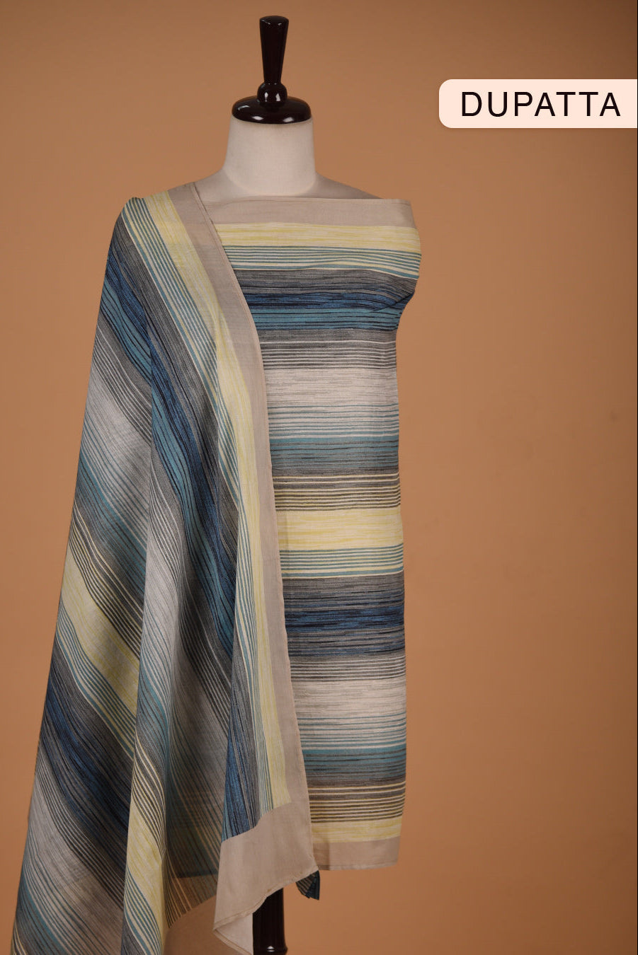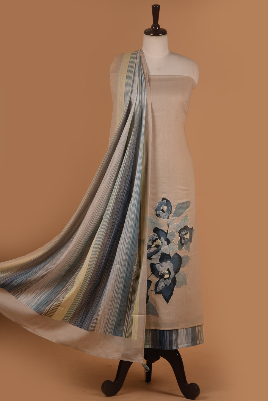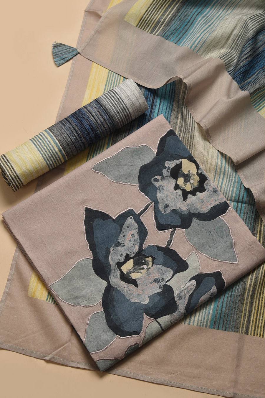 Beige Mul Cotton Embroidered Unstitched Suit Fabric Set With Mul Cotton Printed Dupatta