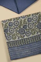 Elevate your wardrobe with this exquisite Chanderi suit fabric set, featuring a sophisticated Beige base complemented by striking Blue prints.