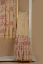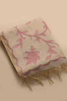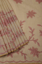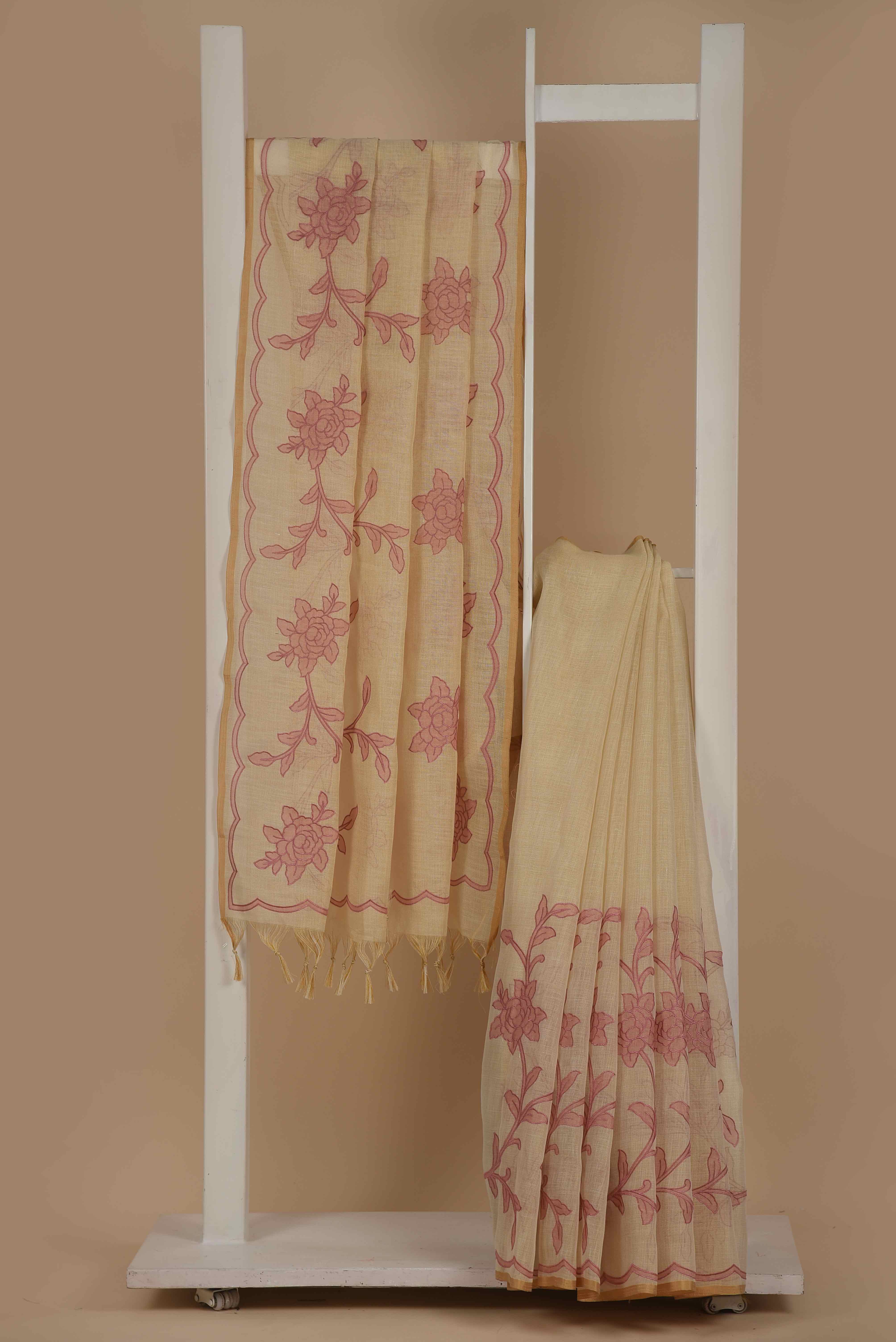 Beige With Pink Linen Blend Embroidered Saree with Linen Embroidered Blouse