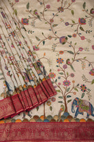 Elevate your festive wardrobe with this Beige with Pink Silk Woven and Embellished Saree paired with a silk blouse.