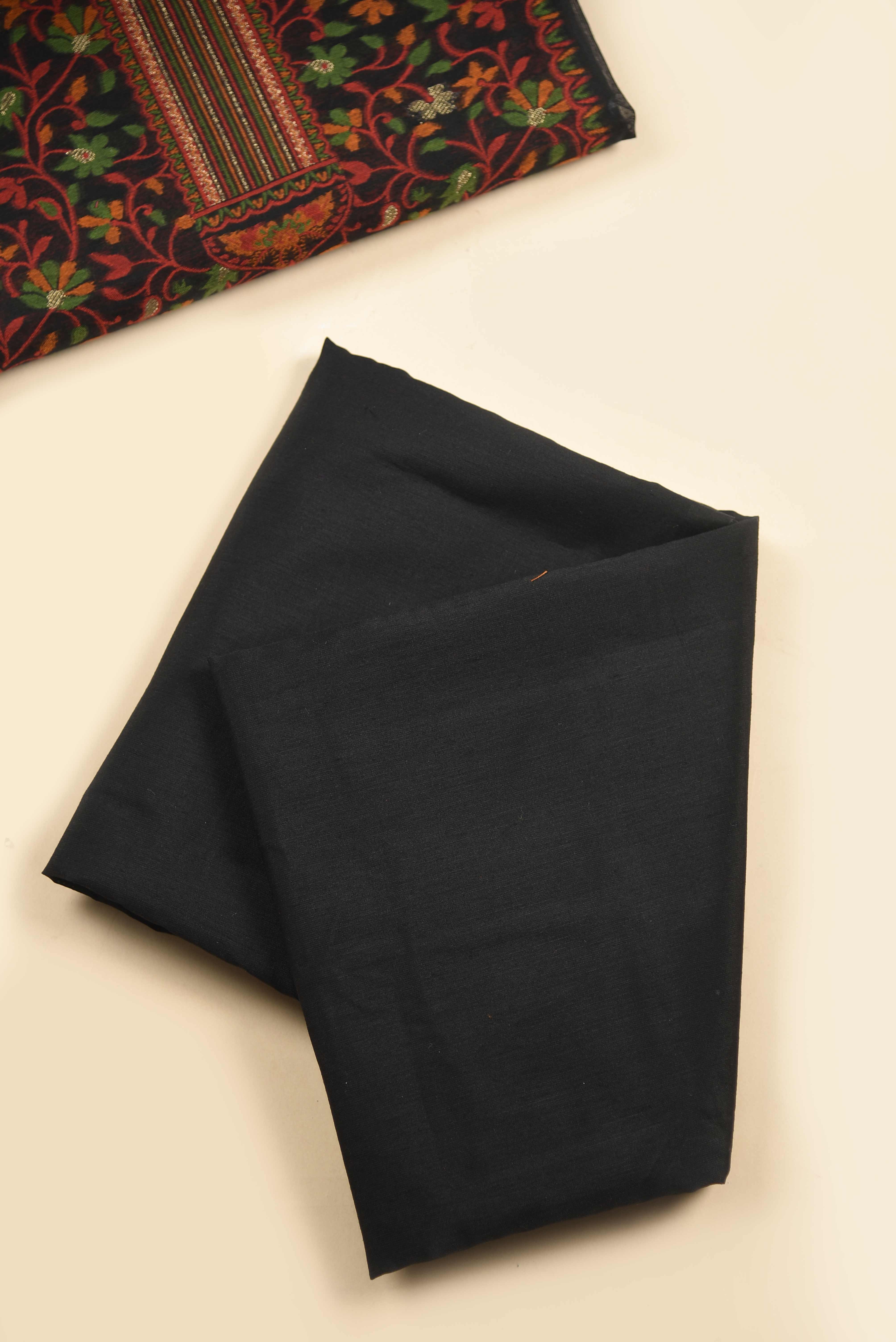 Black Chanderi Silk Blend Jamdani Woven Unstitched Suit Fabric Set With Chanderi Silk Woven Dupatta
