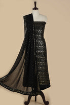 Black Georgette Sequin Embellished Unstitched Suit Fabric Set With Georgette Embellished dupatta