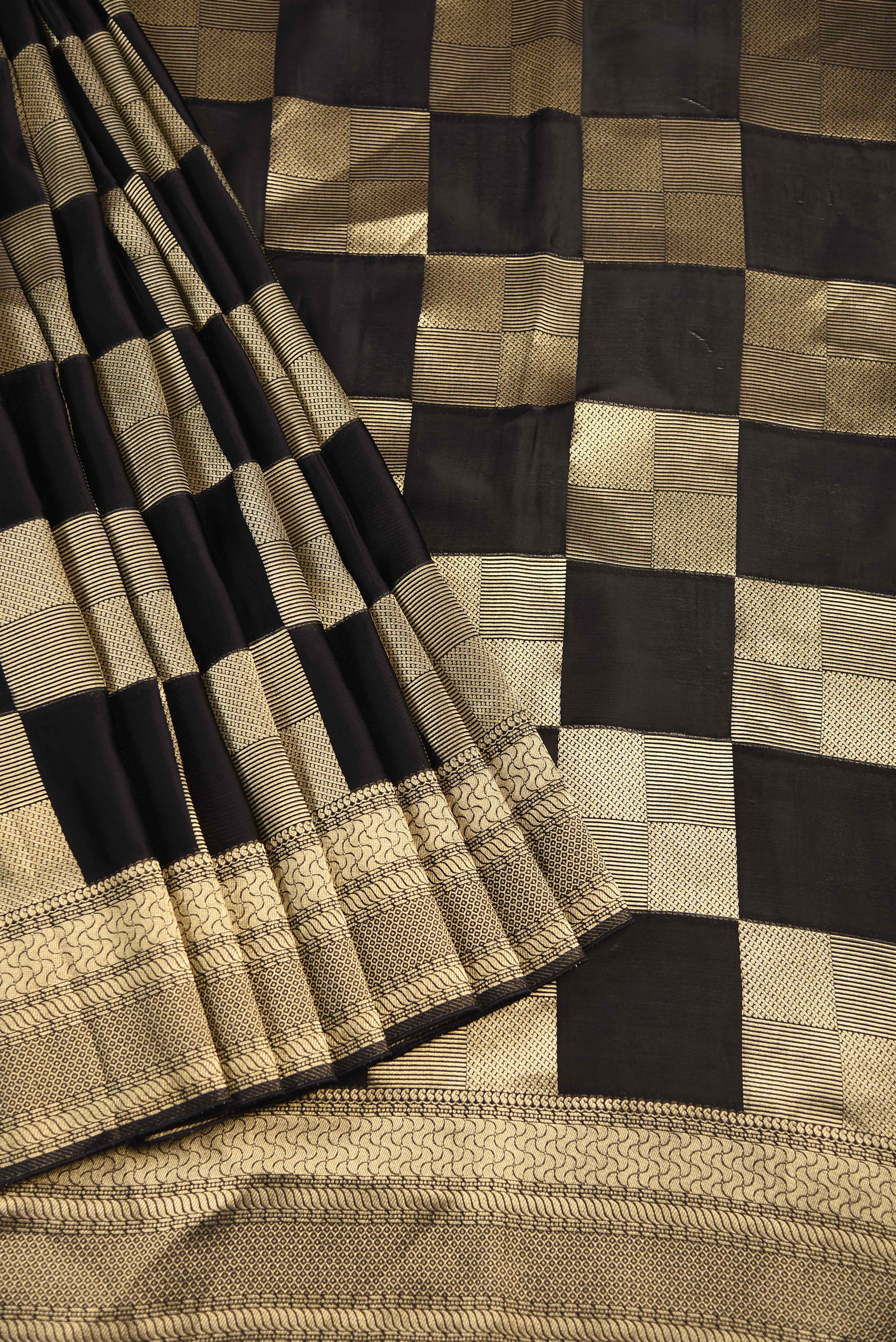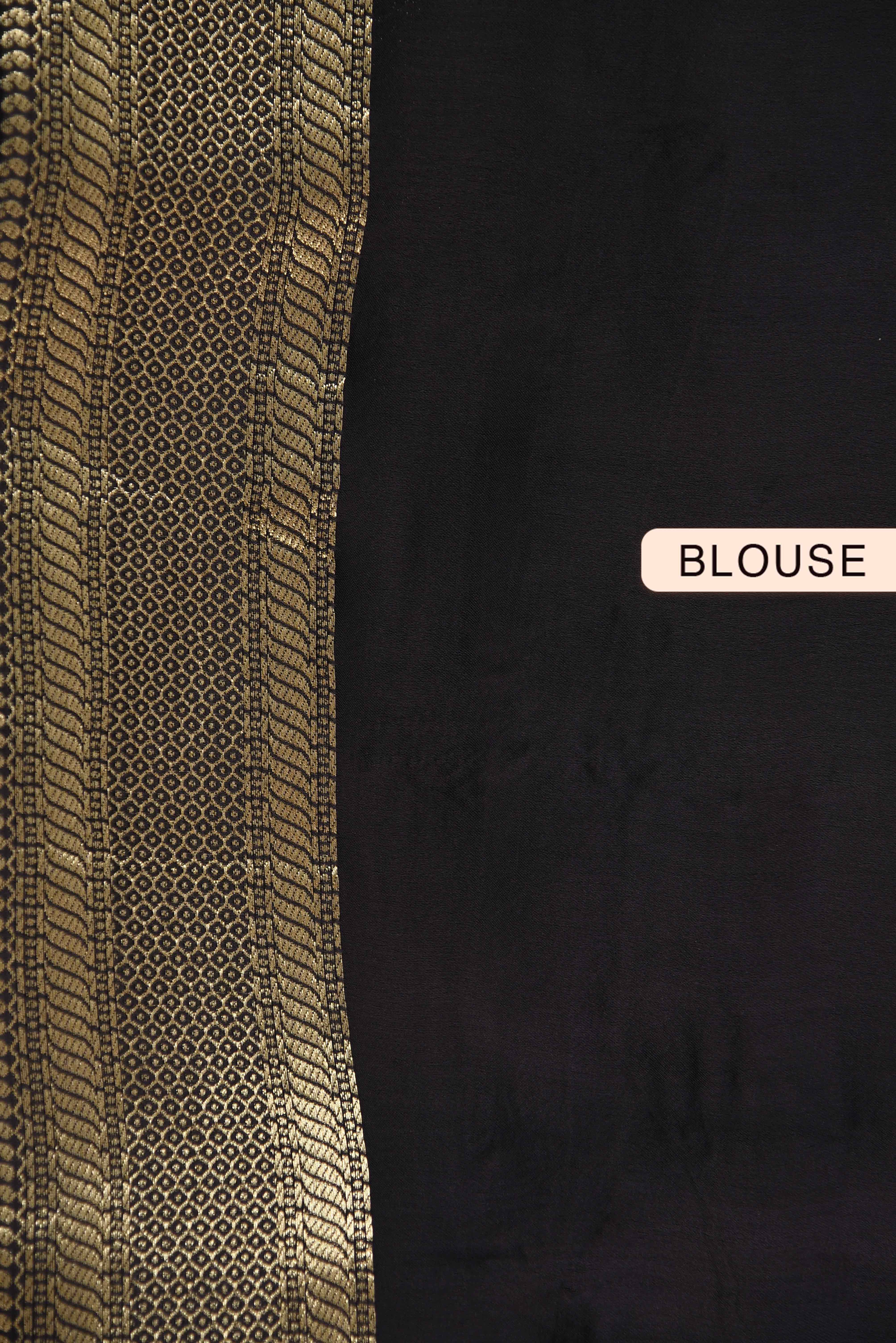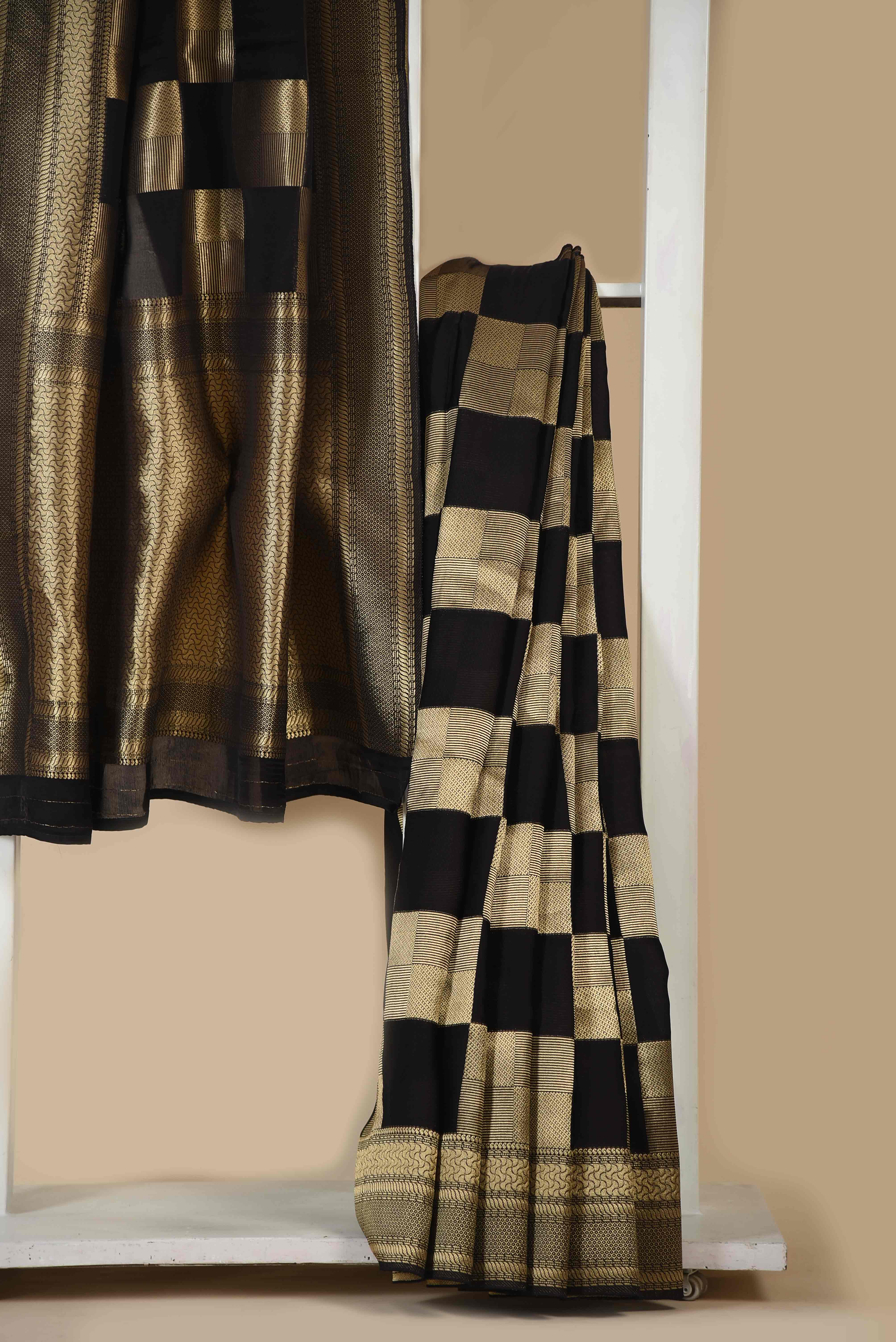 Black Satin Crepe Woven Saree With Satin Crepe Blouse