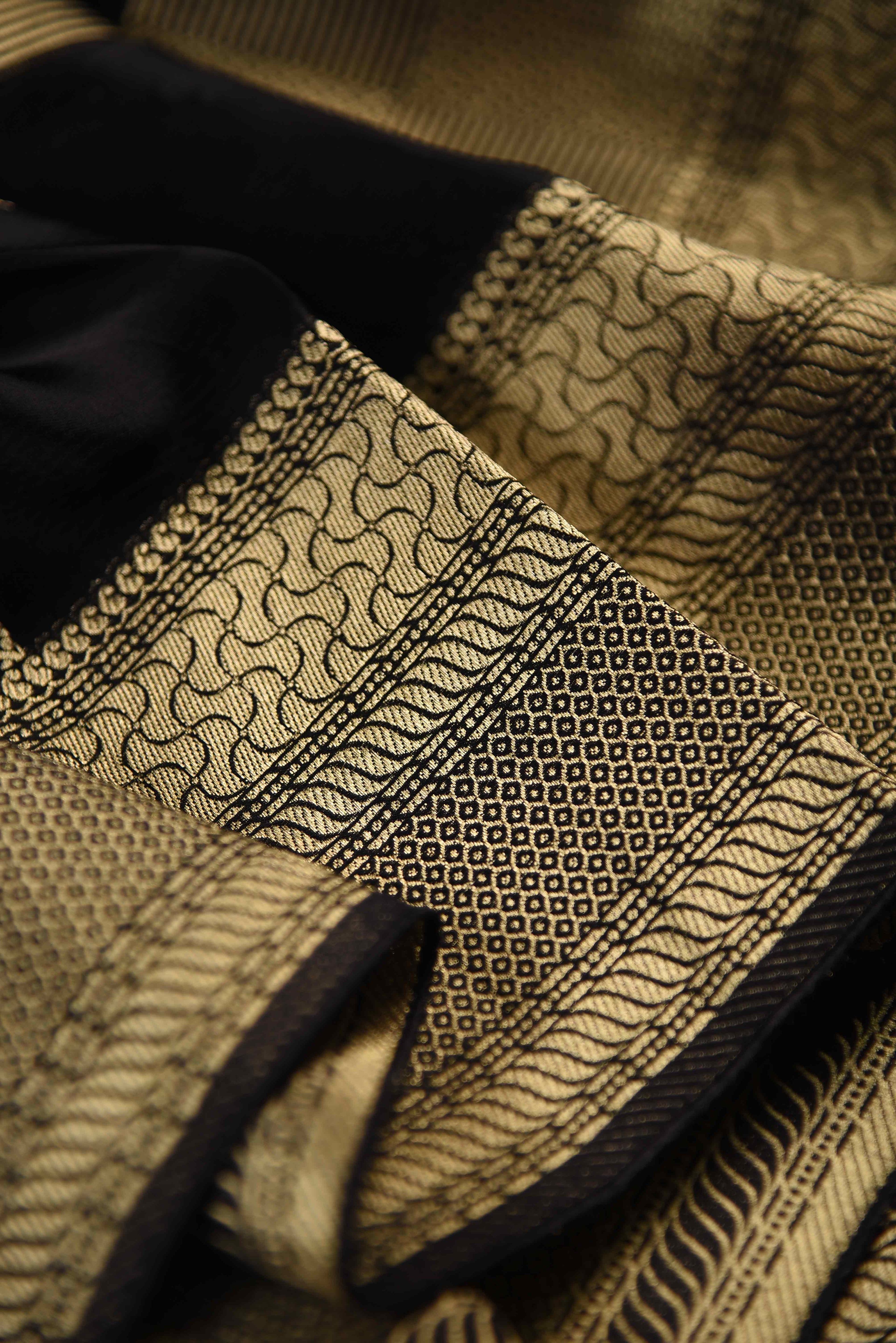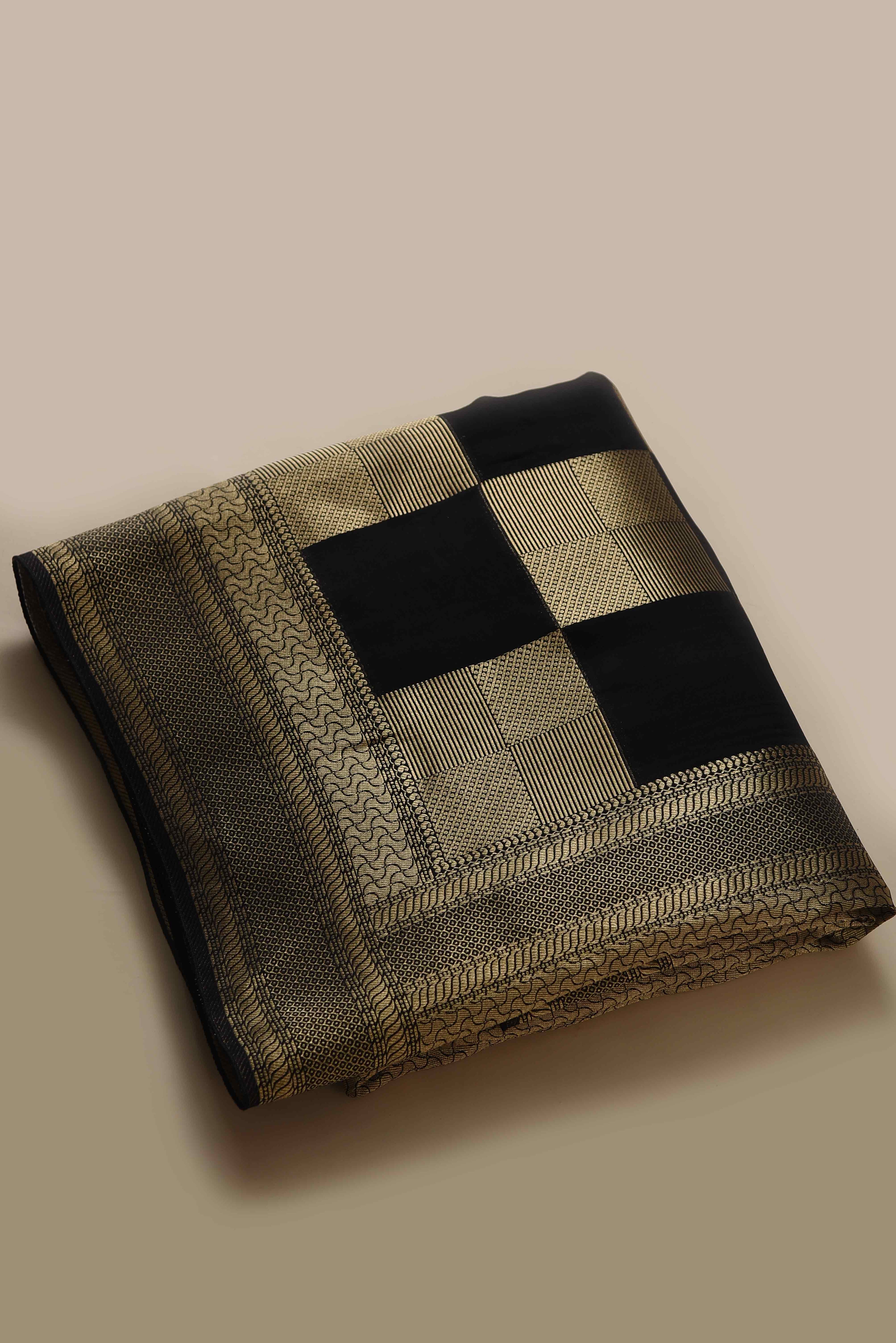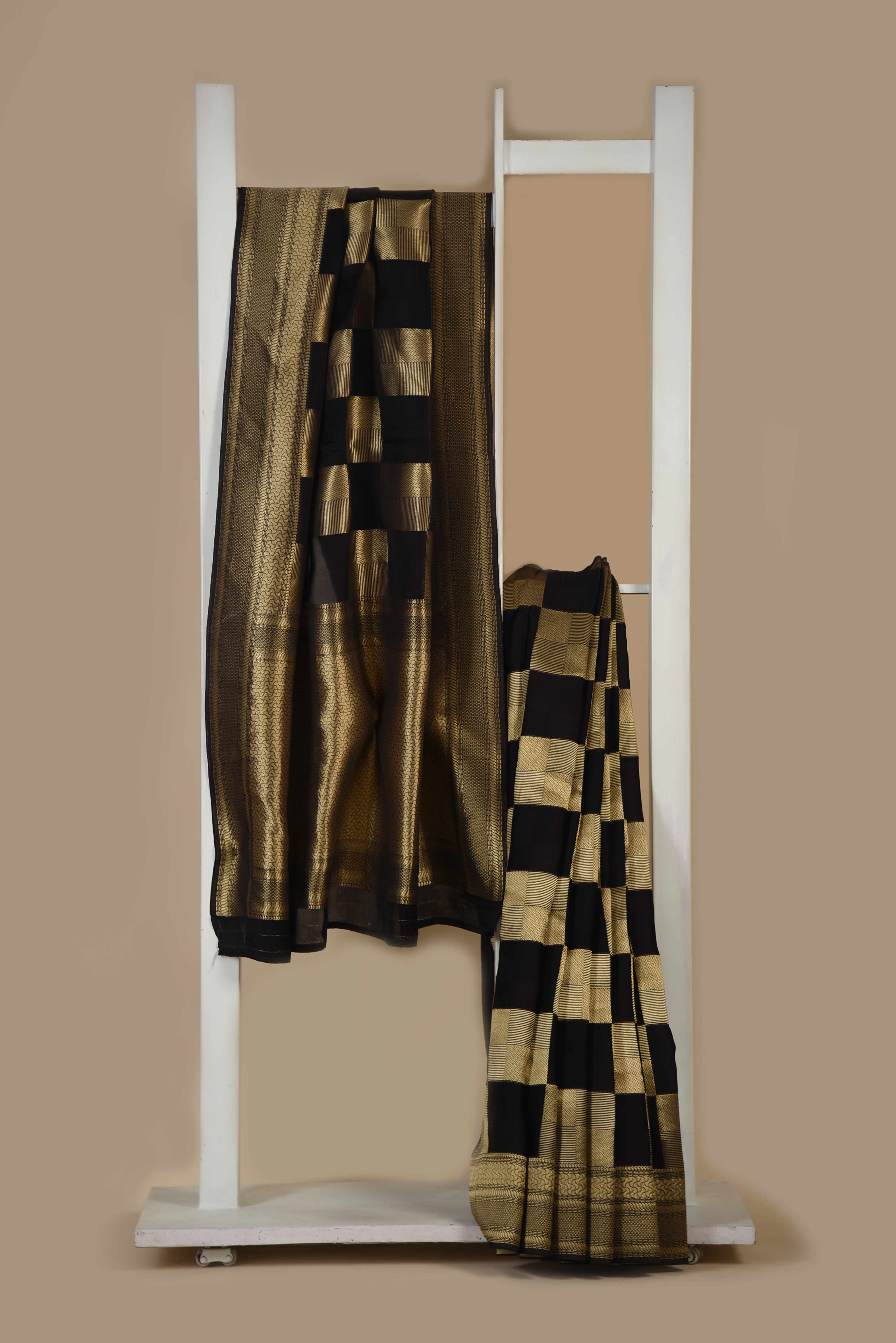 Black Satin Crepe Woven Saree With Satin Crepe Blouse