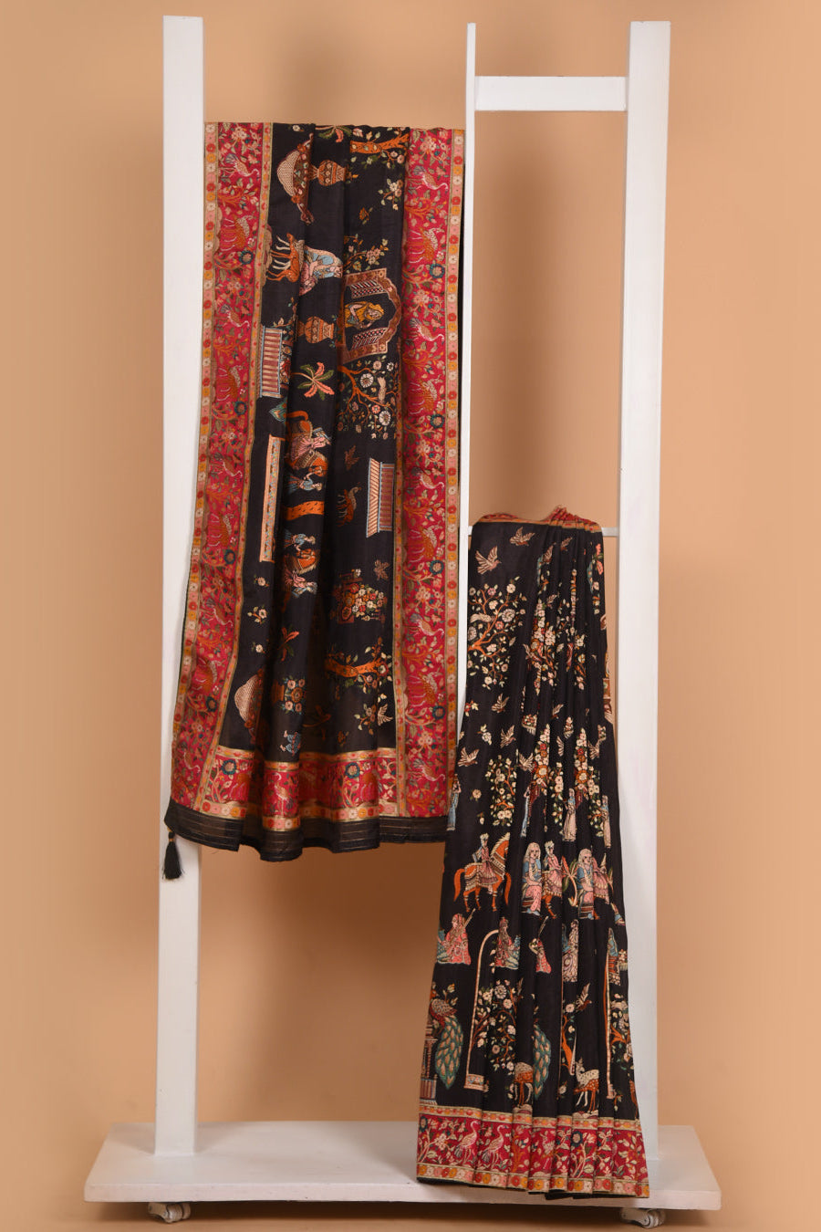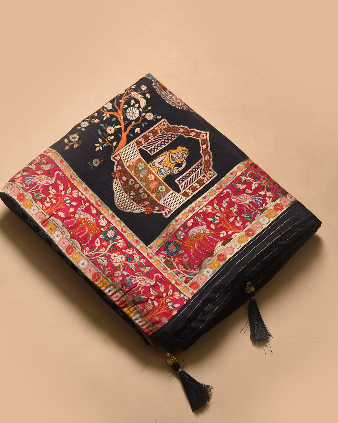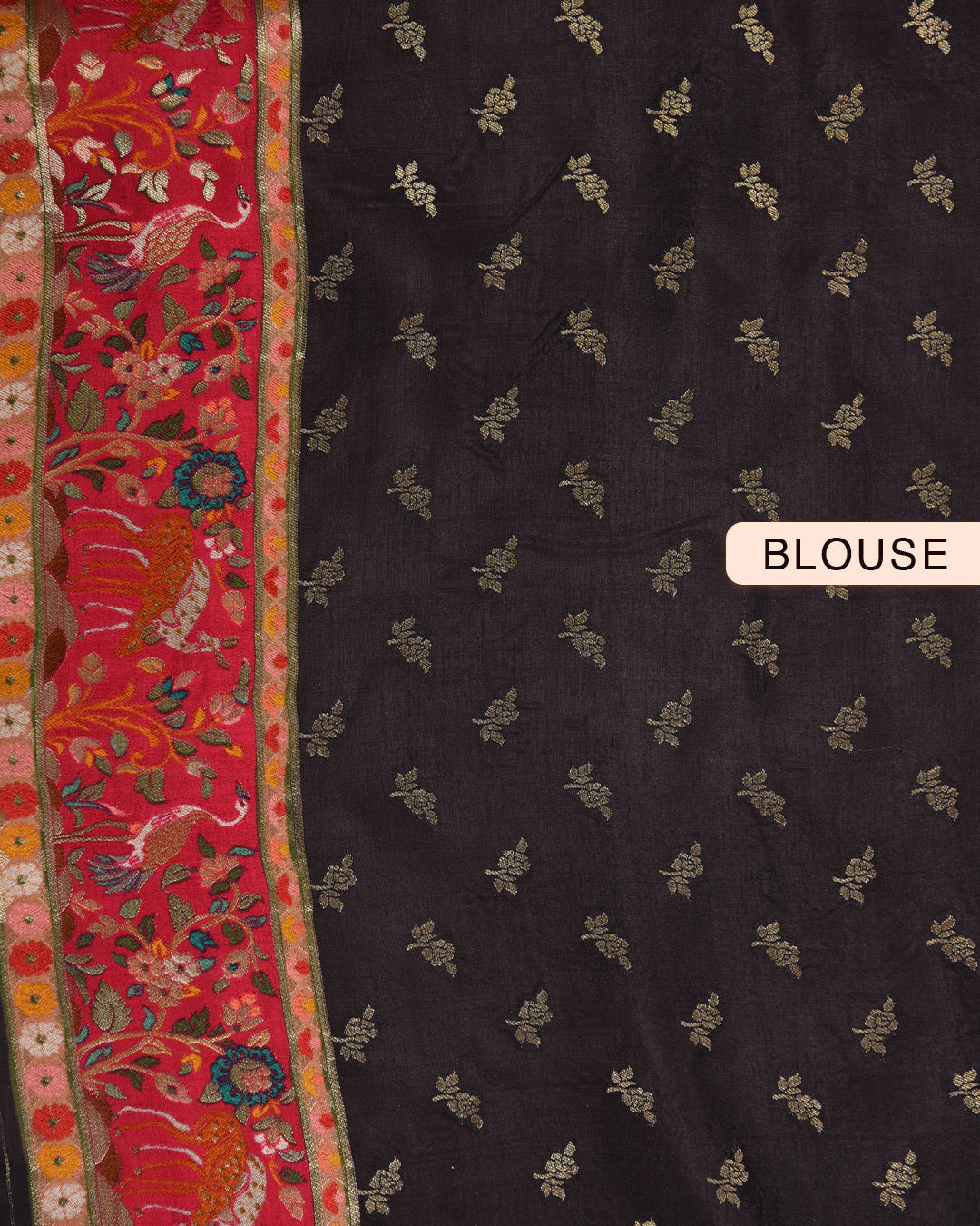 Black Silk Viscose Jamdani Multicolor Woven Saree With Silk Woven Blouse