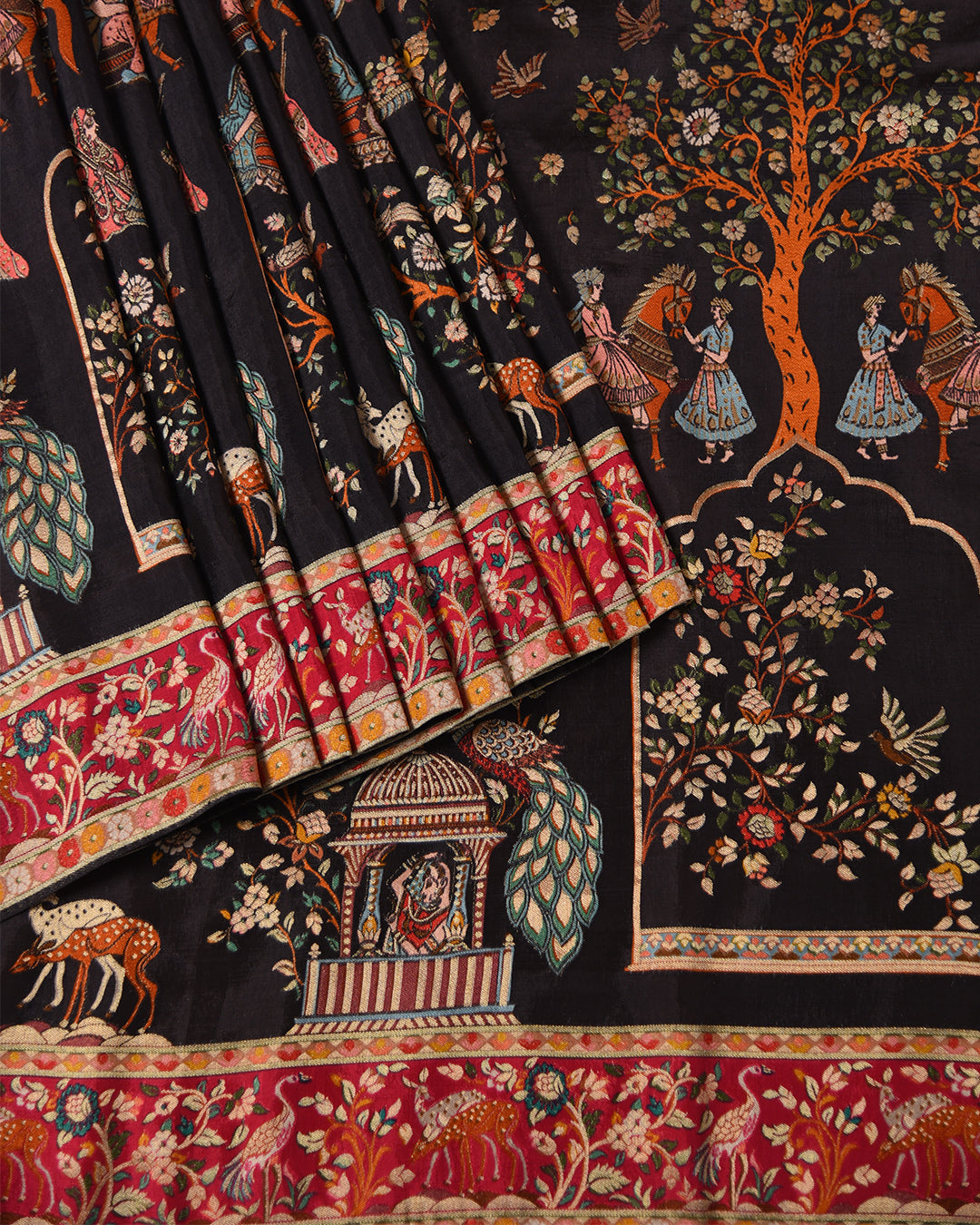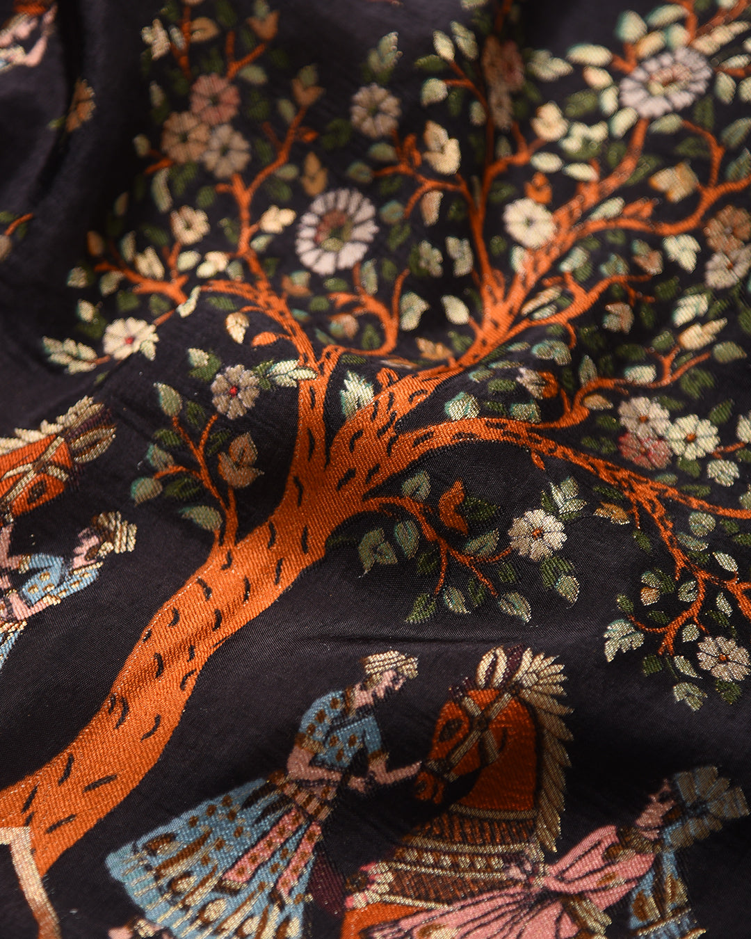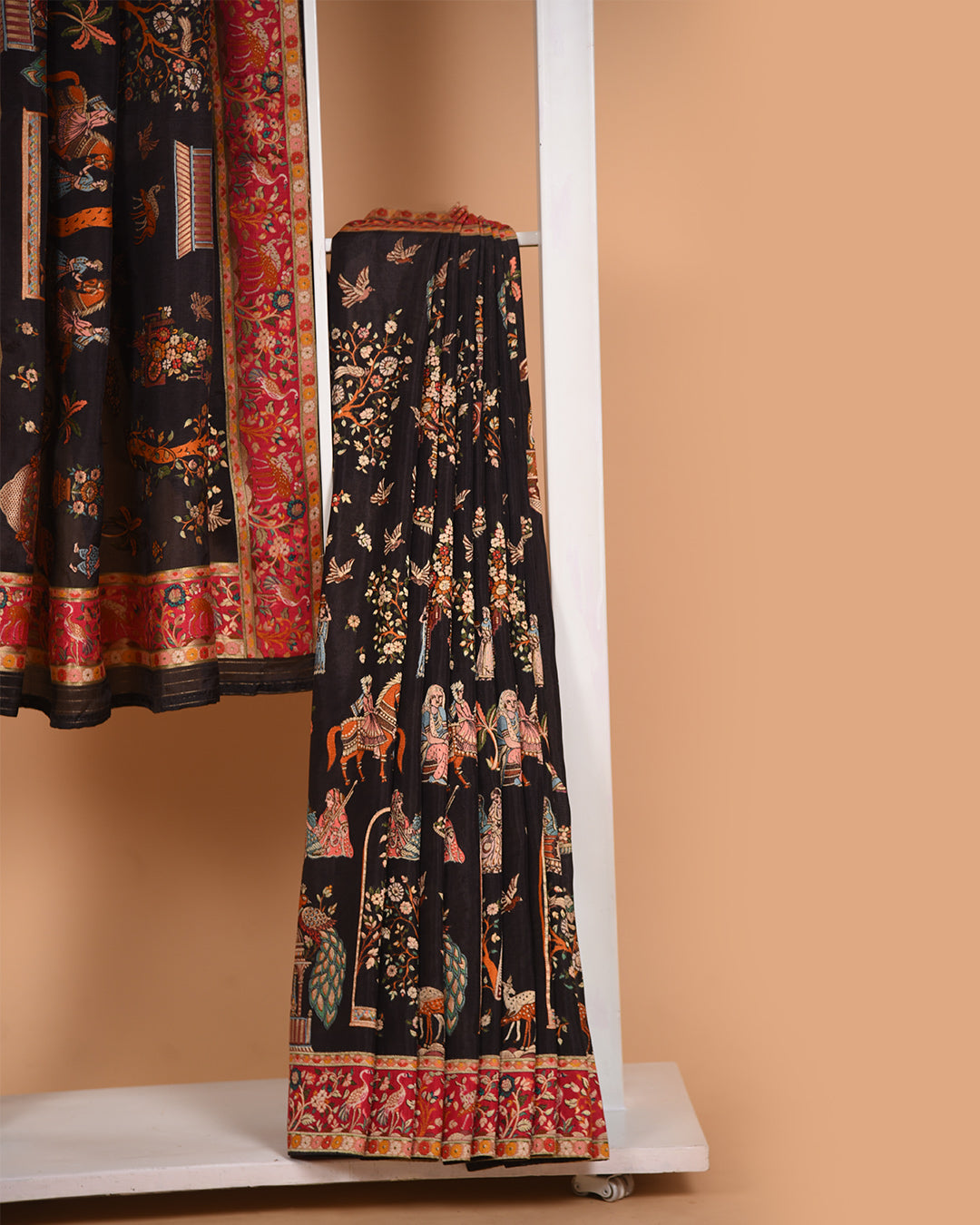 - Elevate your wardrobe with our Black Silk Viscose Jamdani Woven Saree.