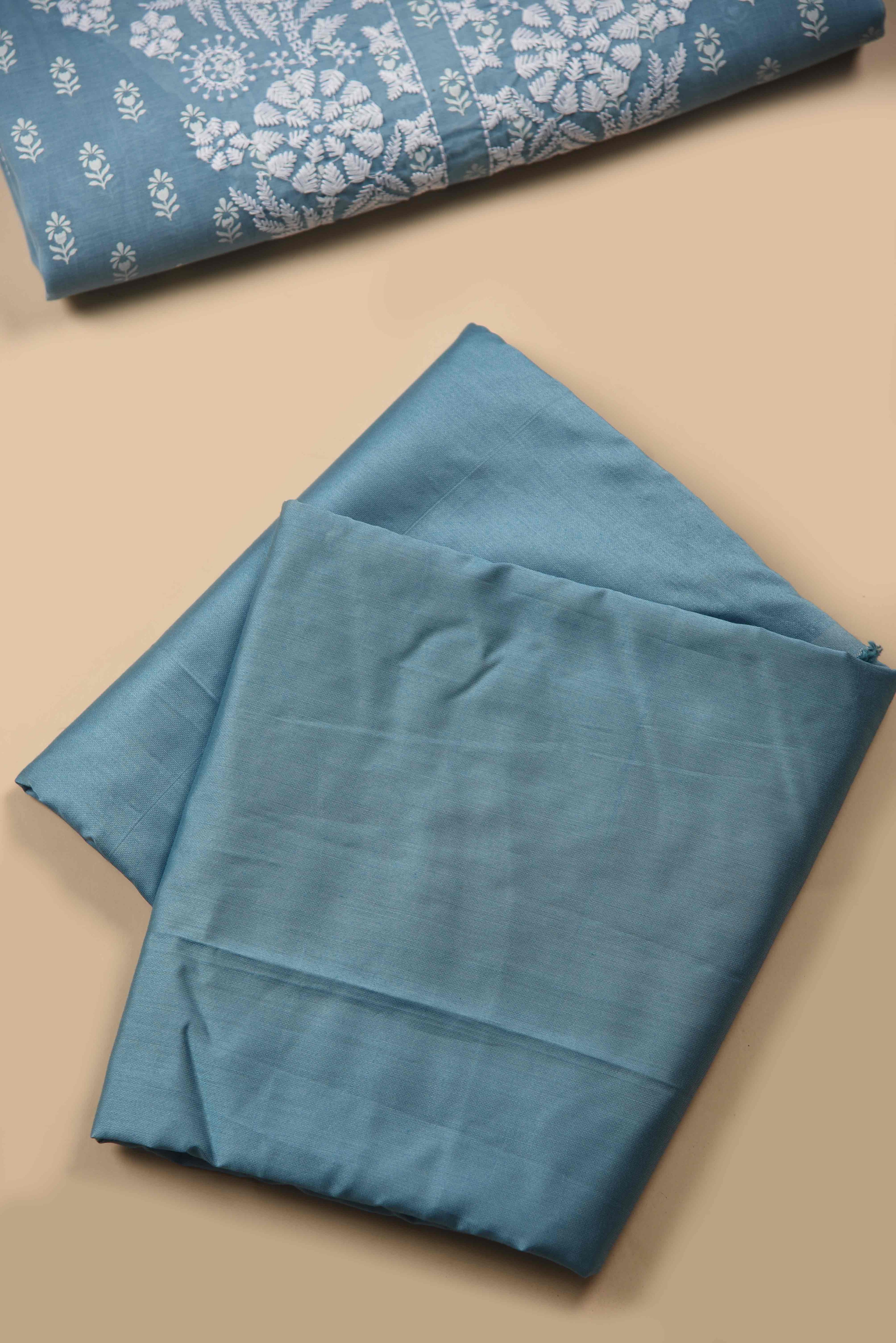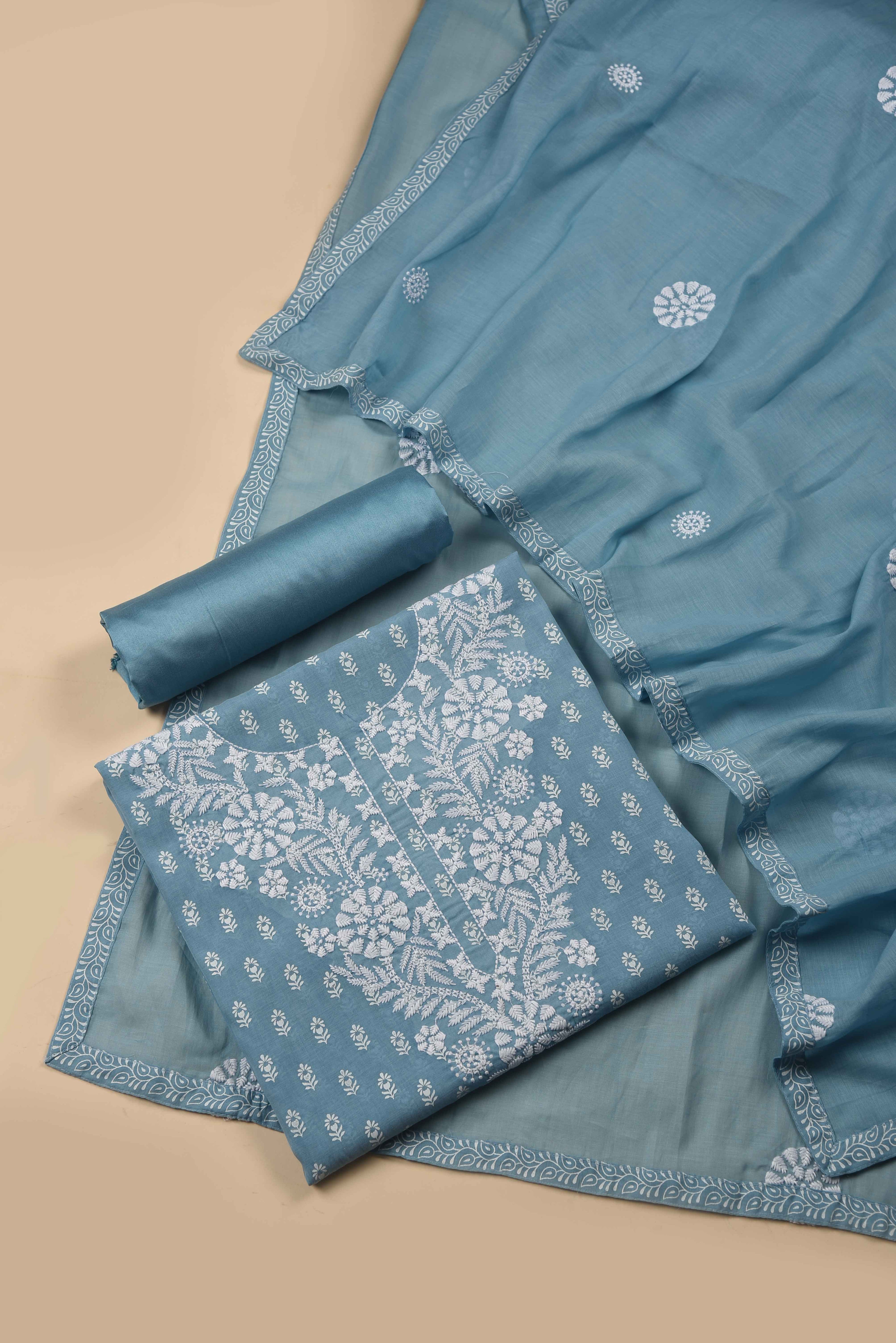 - Experience effortless sophistication with this Blue Luxe Cotton Unstitched Suit Fabric Set, thoughtfully designed for modern women.