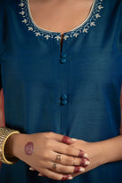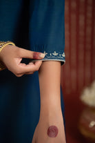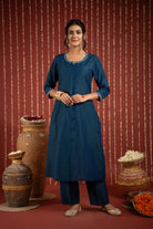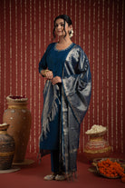 Blue Cotton Silk Zari Work A-Line Kurta Set Regular Fit