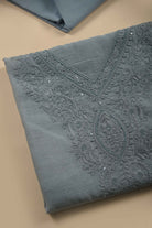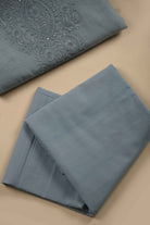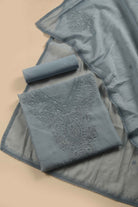 Blue Mul Chanderi Embroidered Unstitched Suit Fabric Set With Mul Chanderi Embroidered Dupatta