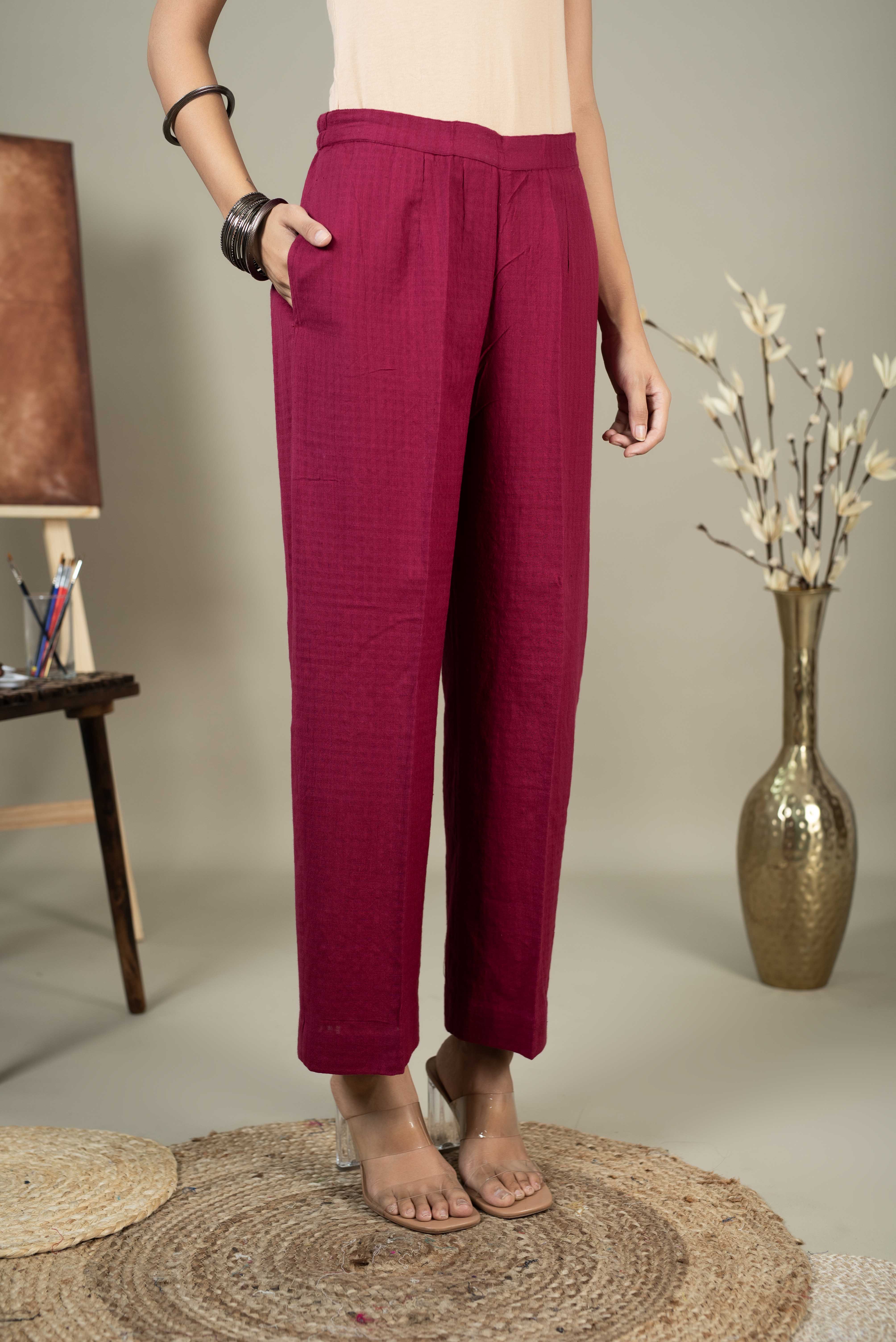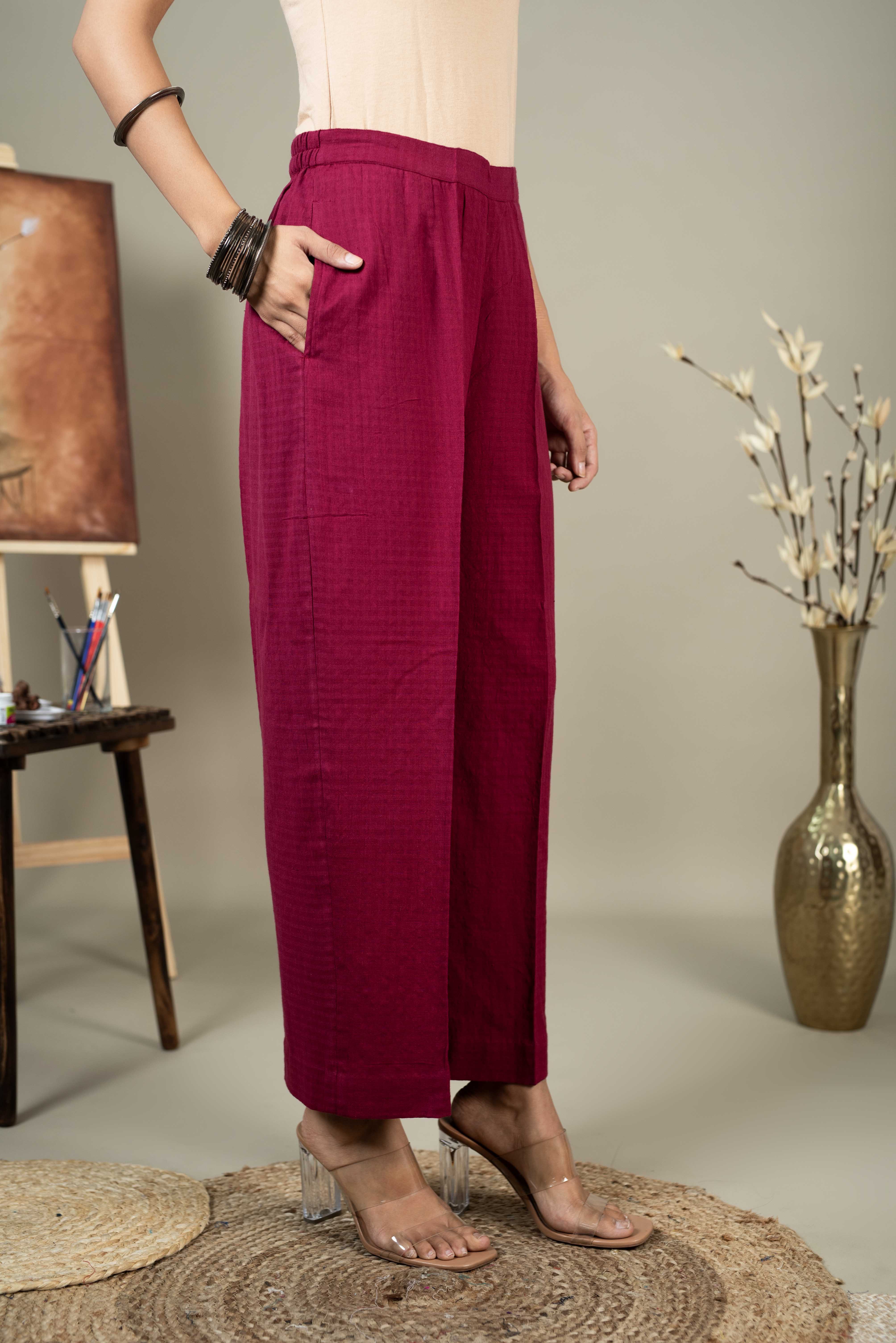 Burgundy Pure Handloom Cotton Culotte Pants – Straight Fit