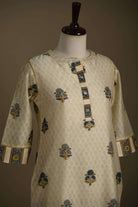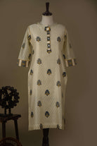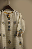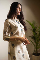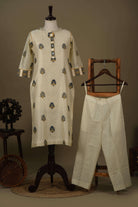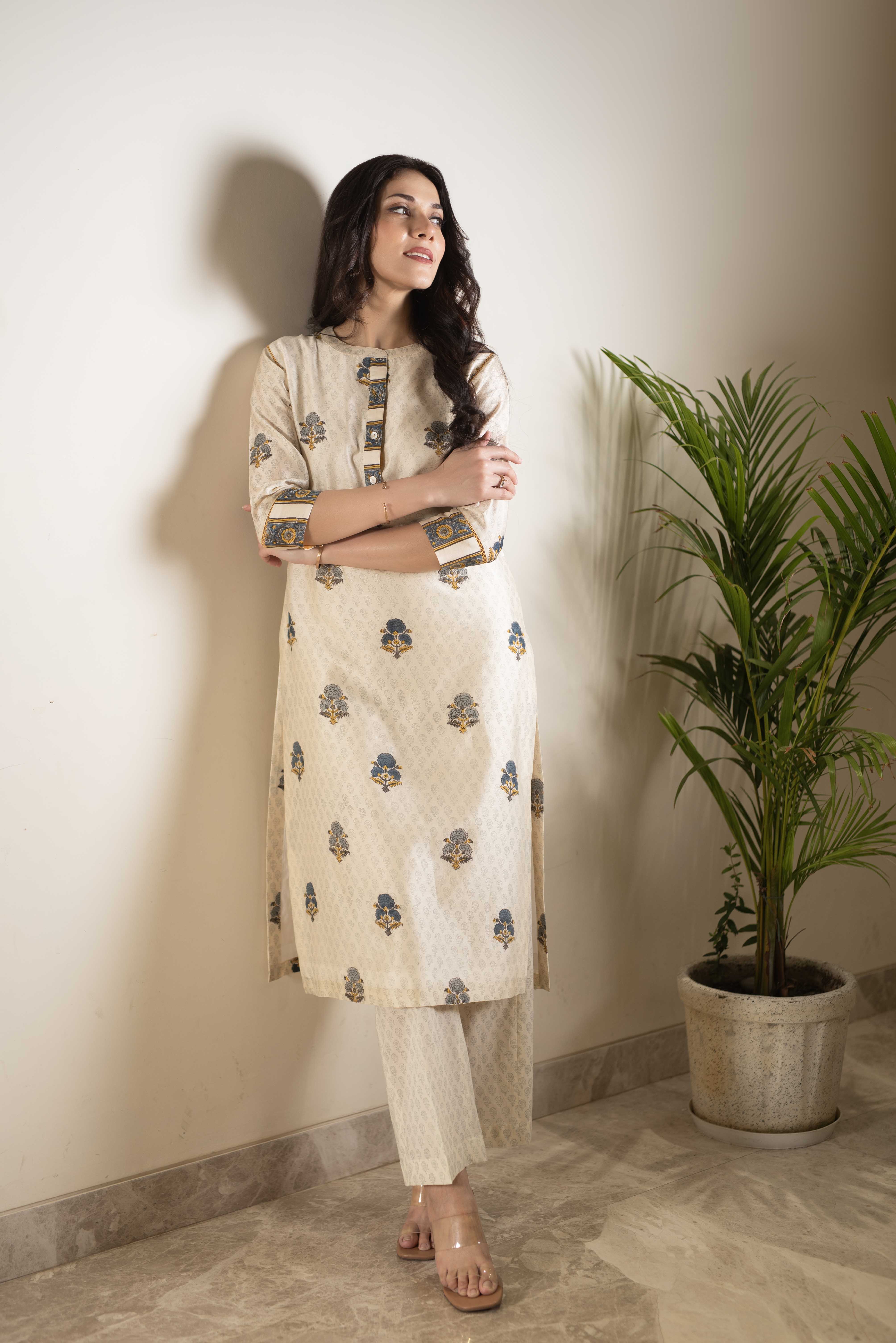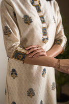 Cream Chanderi Hand Block Printed Straight Kurta Set With Pant - Regular Fit