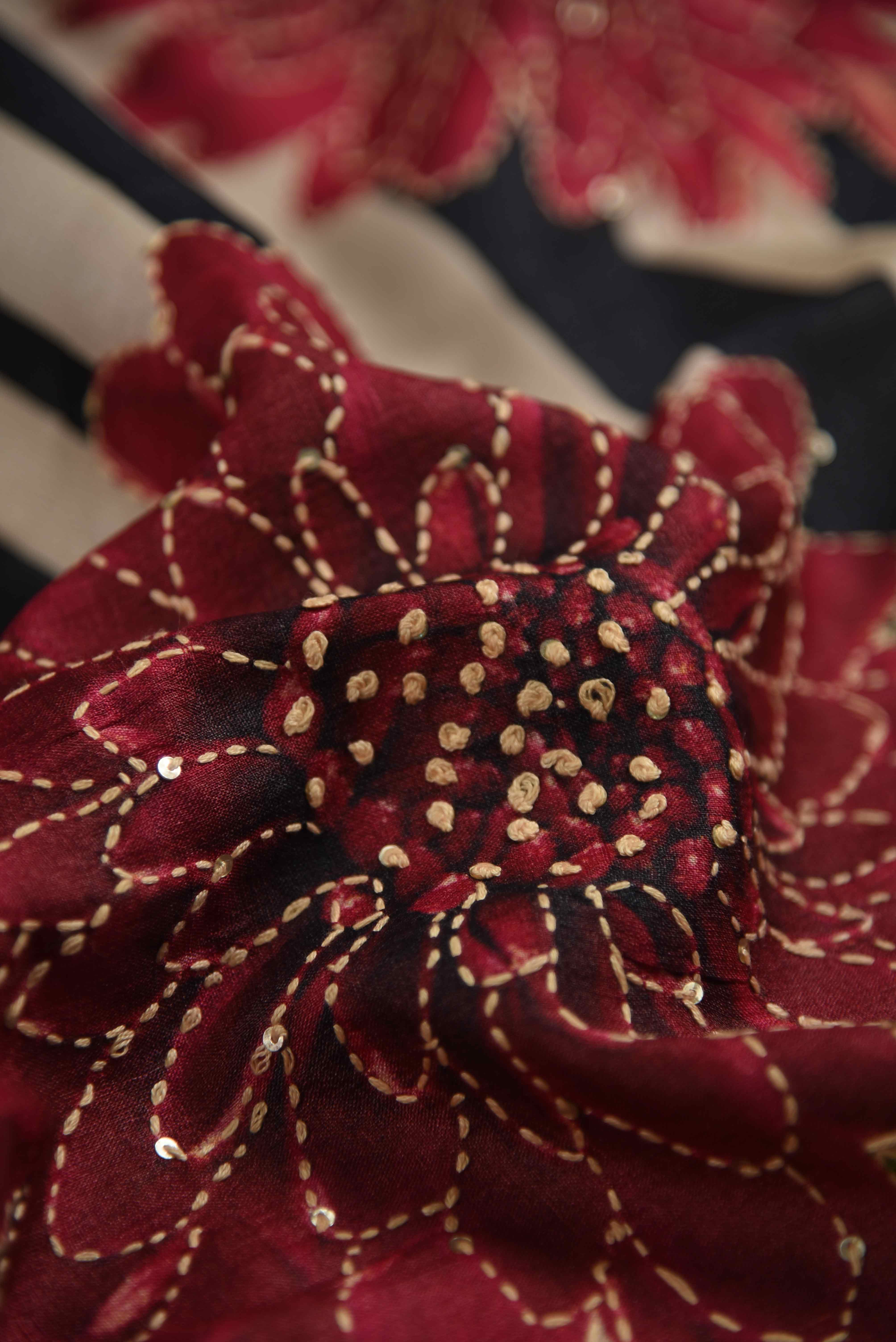 Featuring refined floral prints and delicate hand embroidery accented with sequins, it offers a subtle sparkle that enhances its sophisticated appeal.