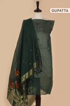 Green Chanderi Silk Blend Jamdani Unstitched Suit Fabric Set With Chanderi Silk Dupatta