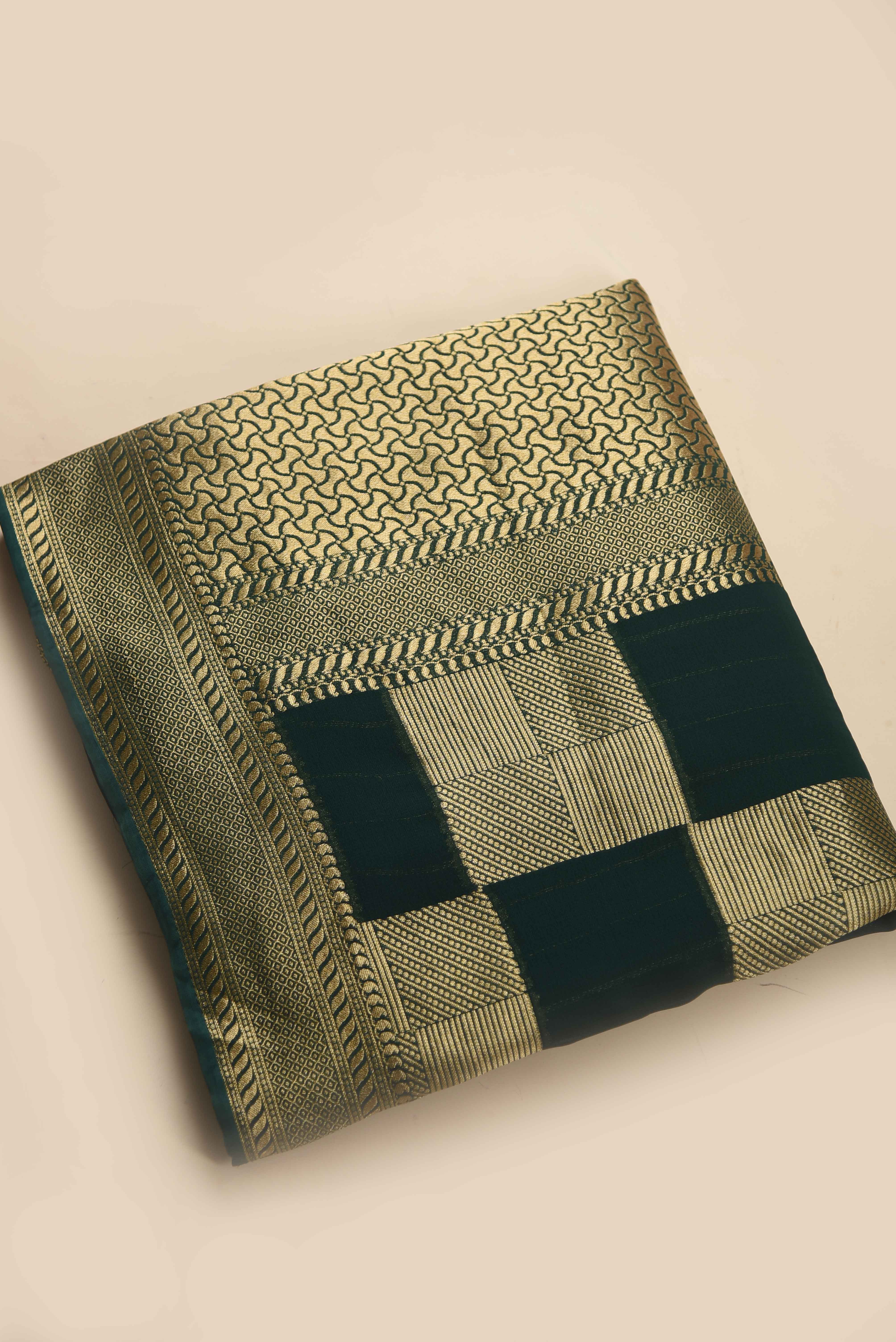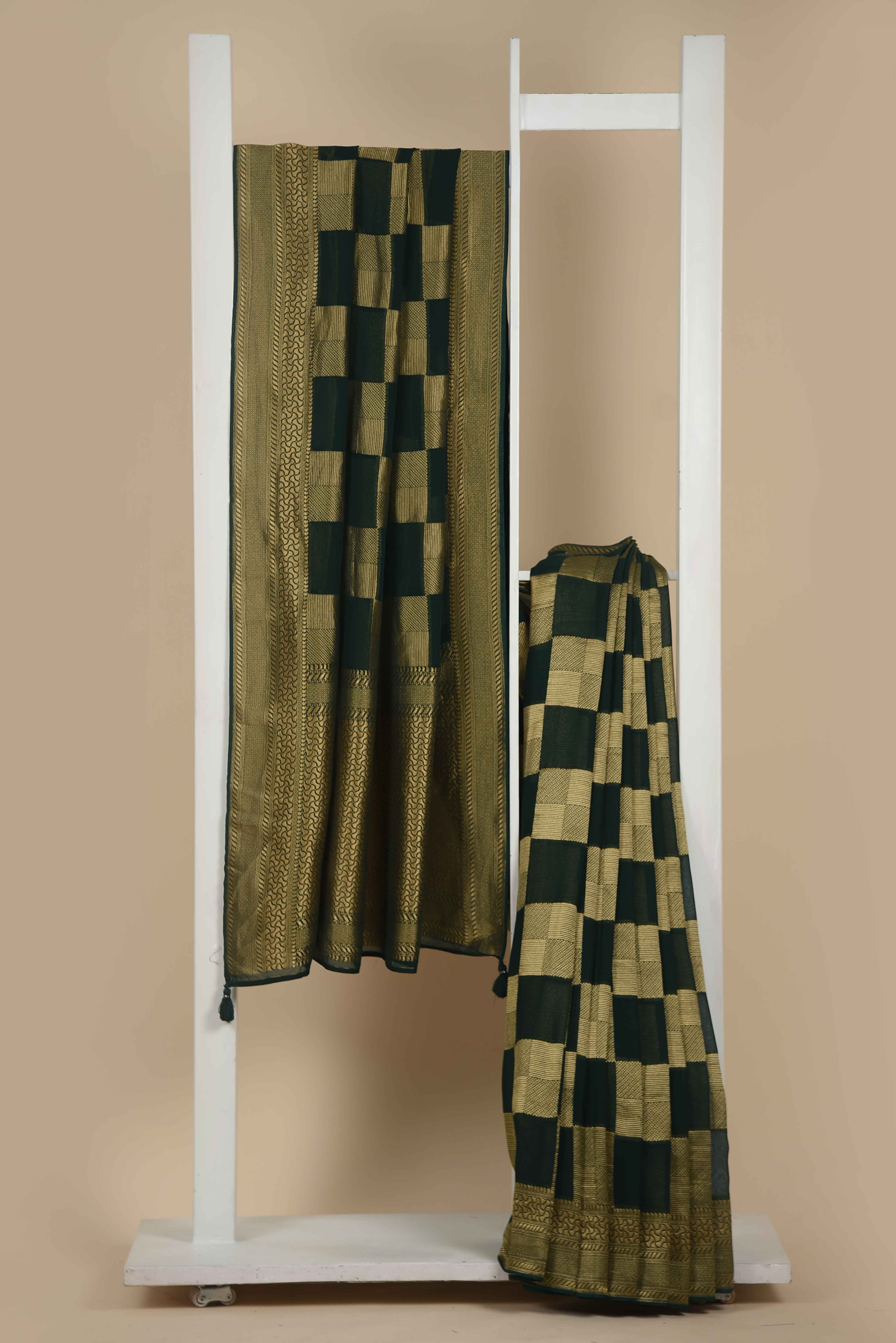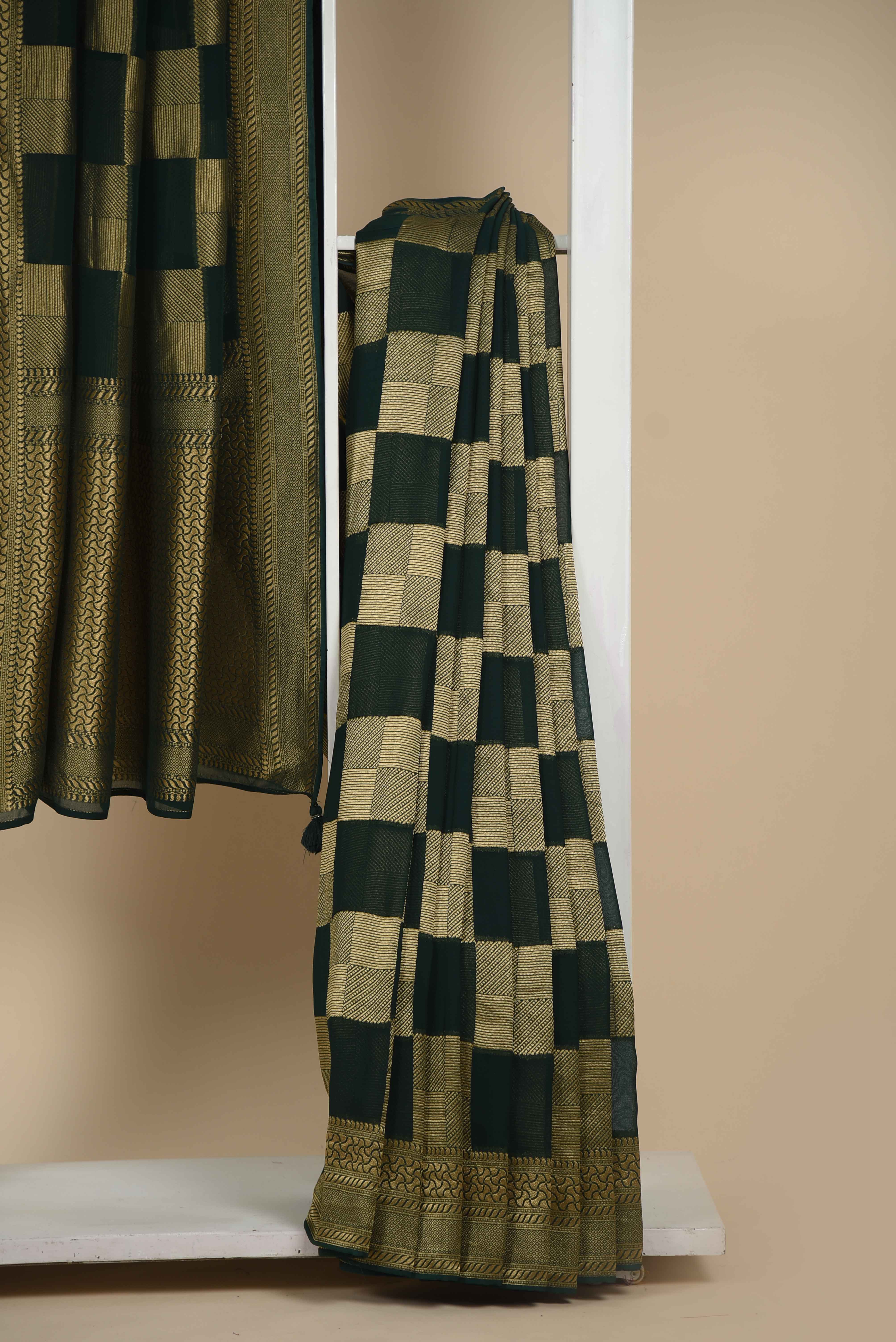 Experience timeless elegance with this Green Georgette Woven Saree, crafted from soft, breathable fabric that ensures comfort and graceful flow.