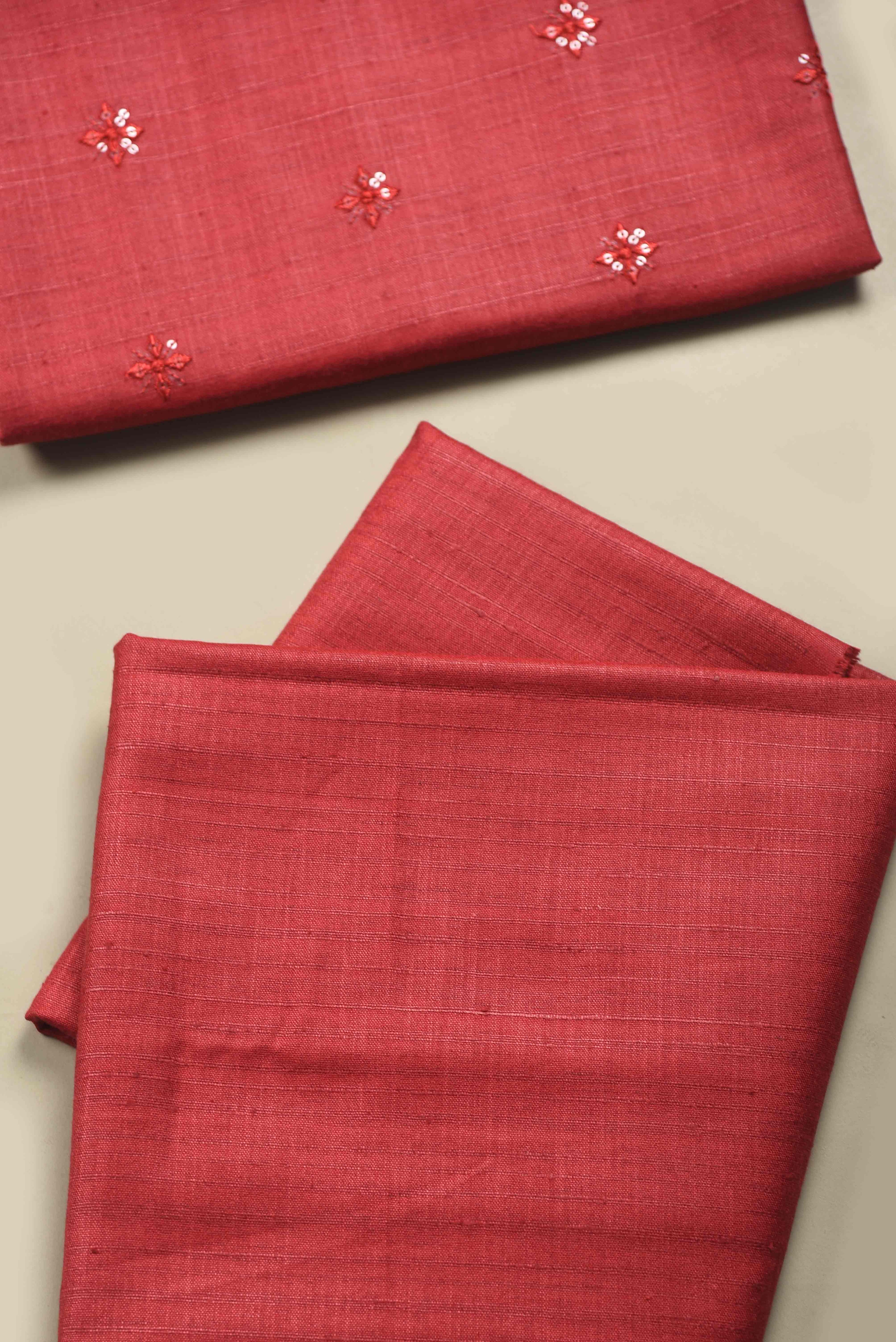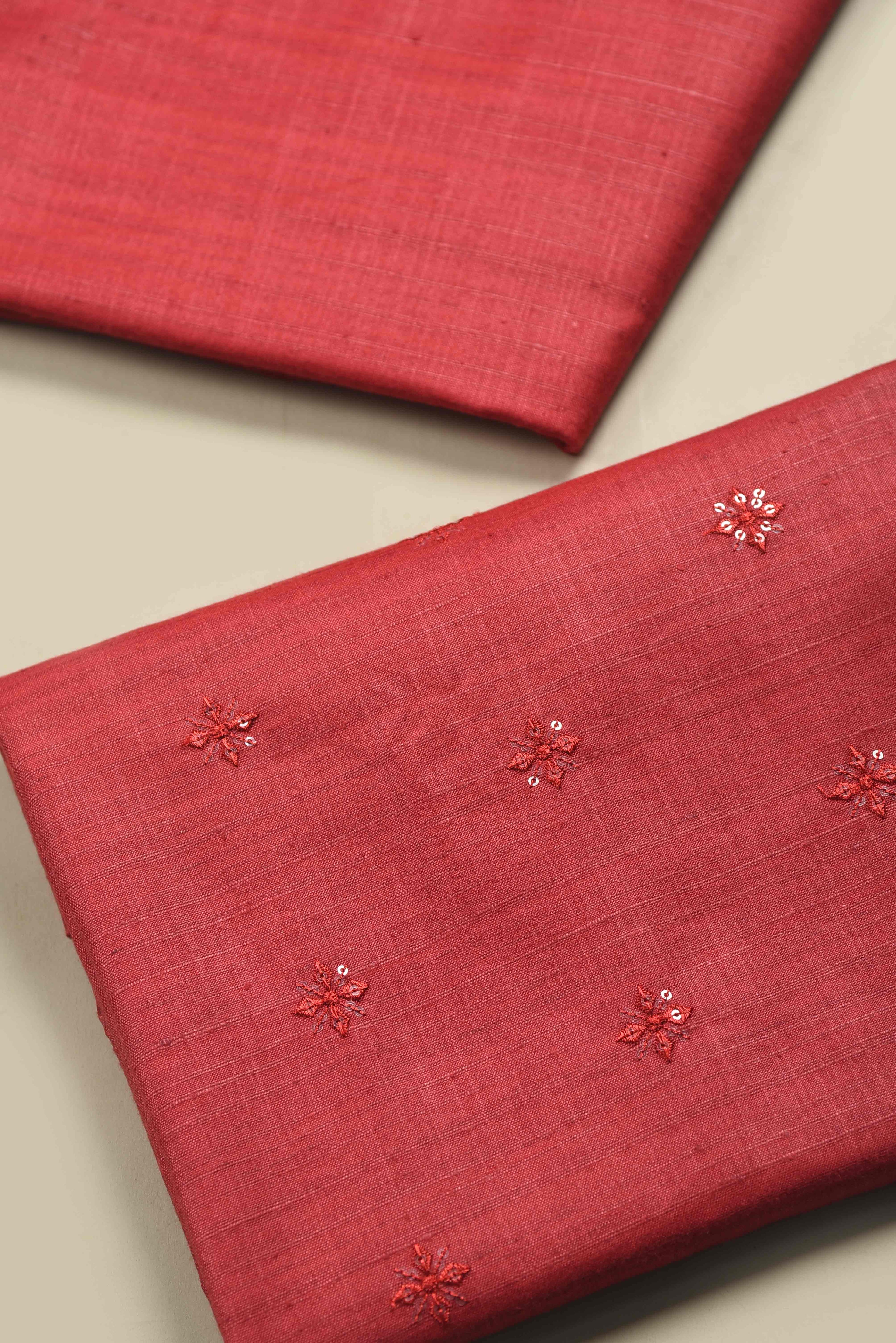 Indulge in timeless luxury with our Maroon Cotton Raw Silk Blend Unstitched Suit Fabric Set.