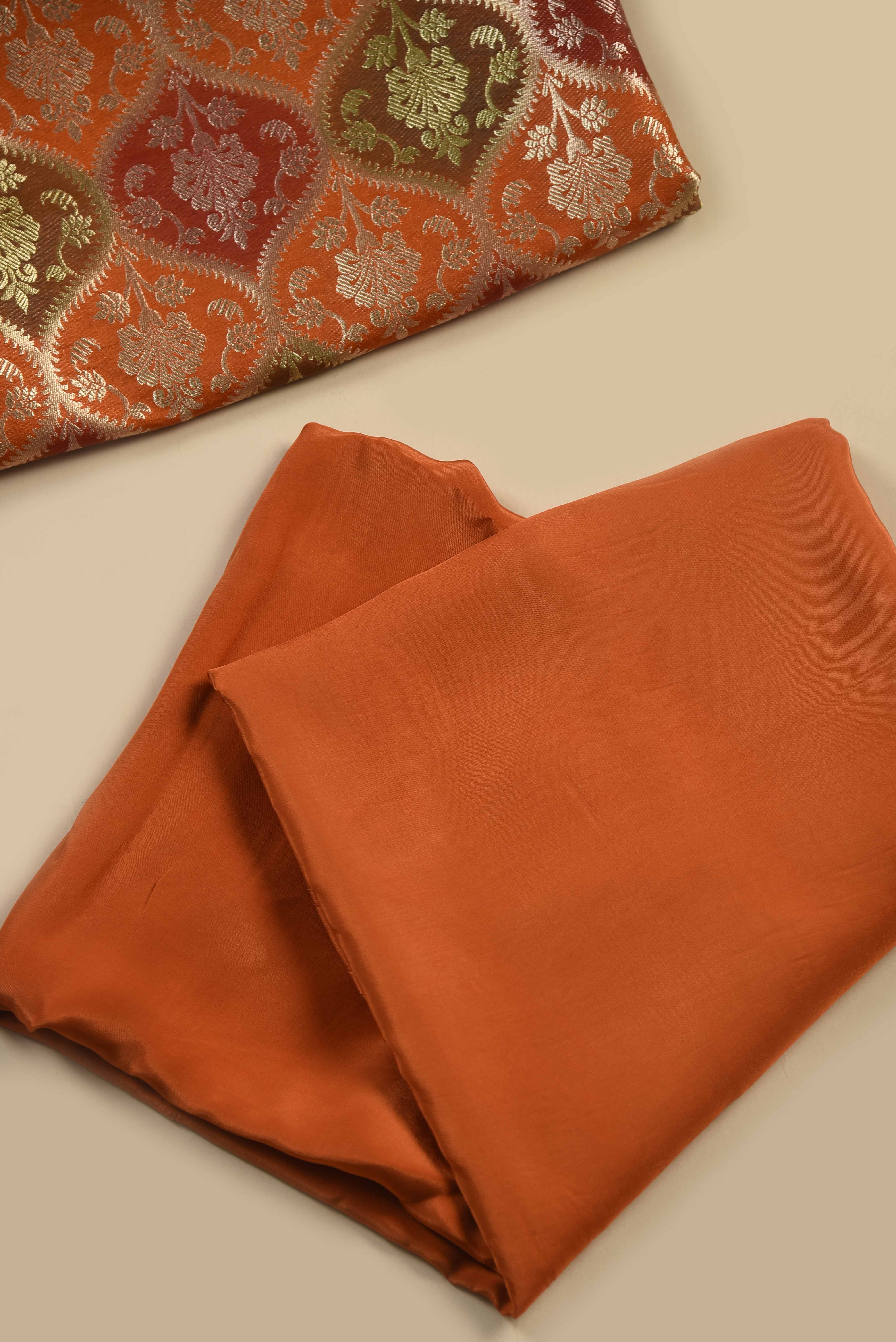 - Discover refined luxury with this stunning Orange silk unstitched suit set, meticulously crafted for your most cherished occasions.
