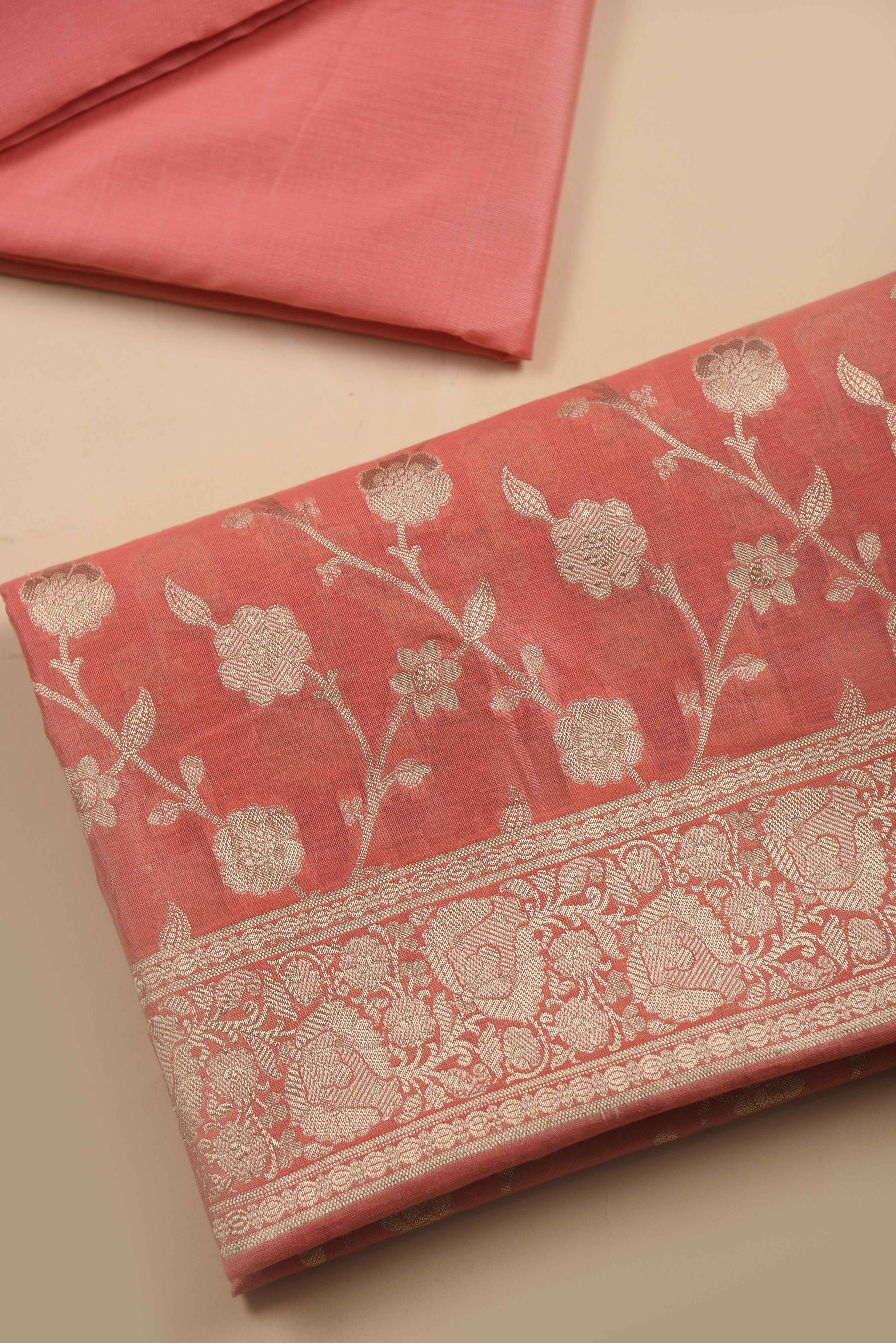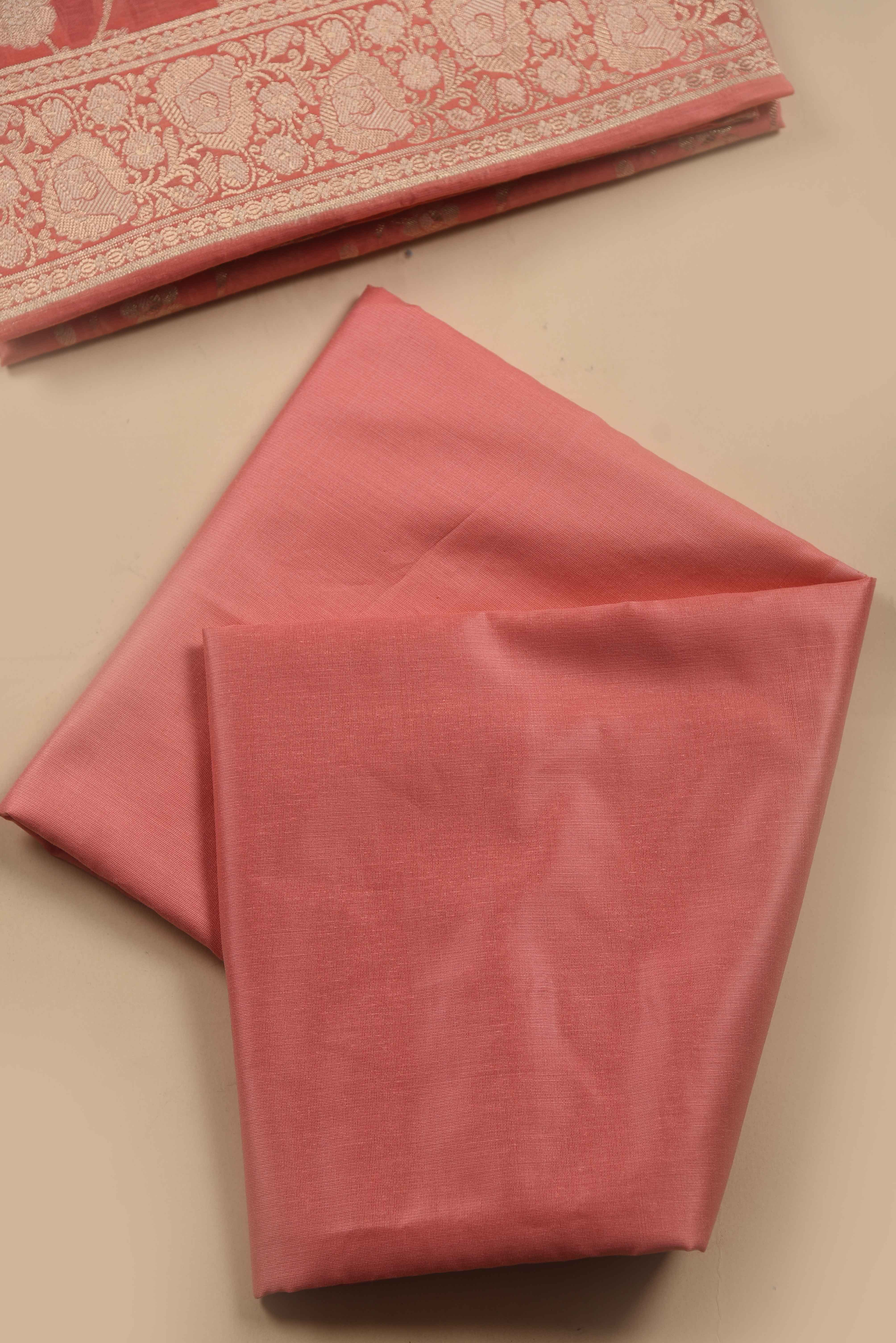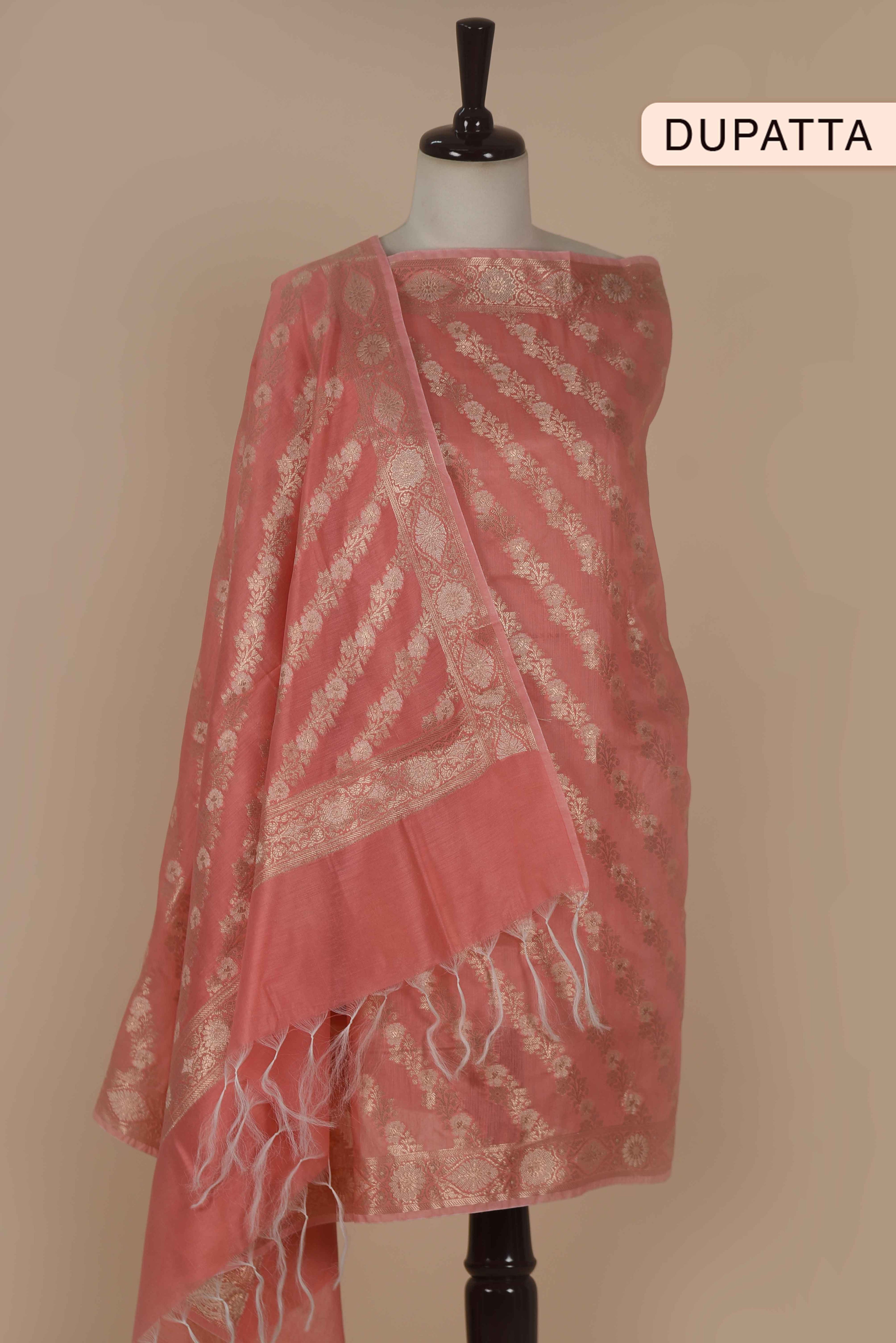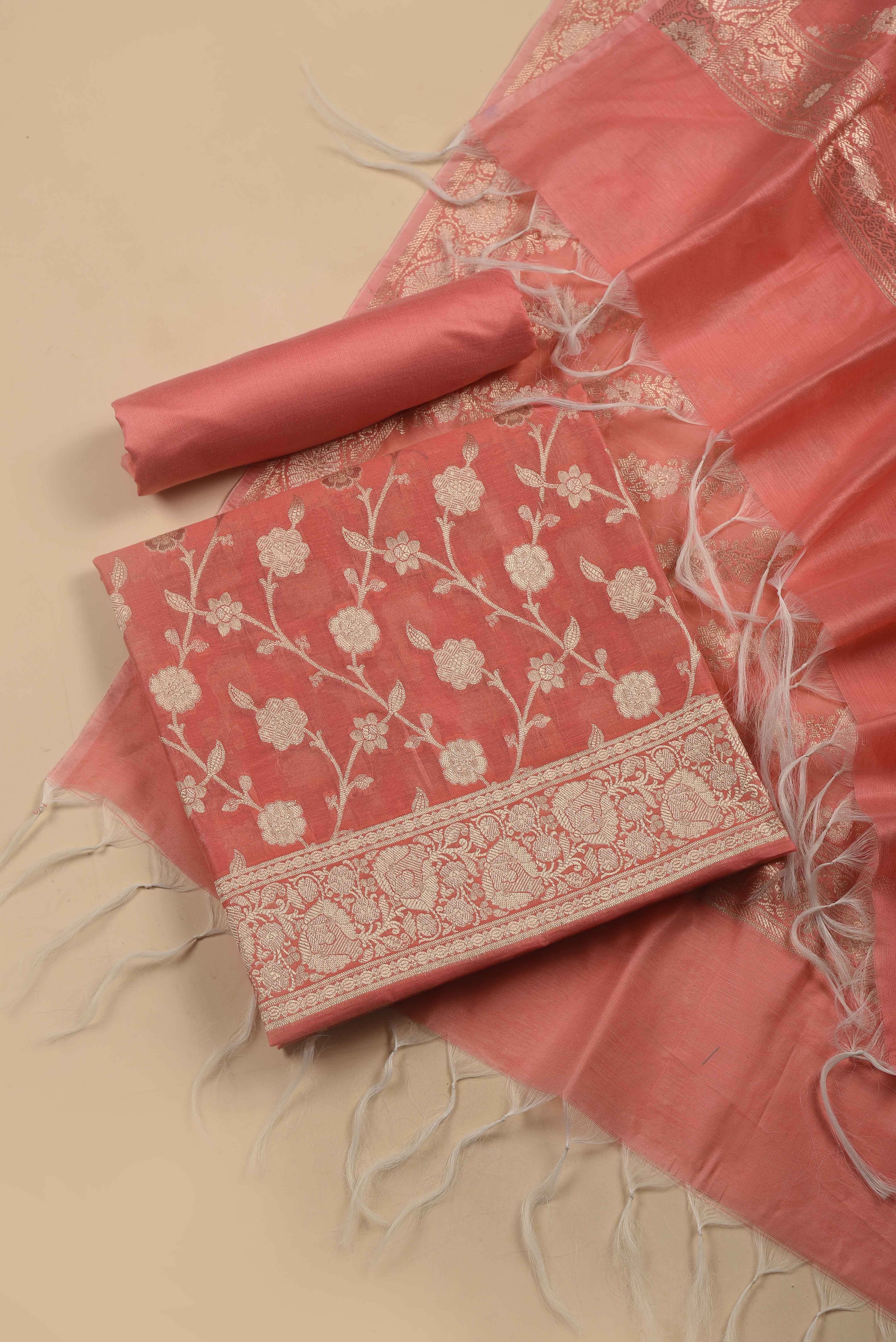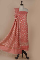 Peach Chanderi Silk Blend Woven Unstitched Suit Fabric Set With Woven Chanderi Dupatta