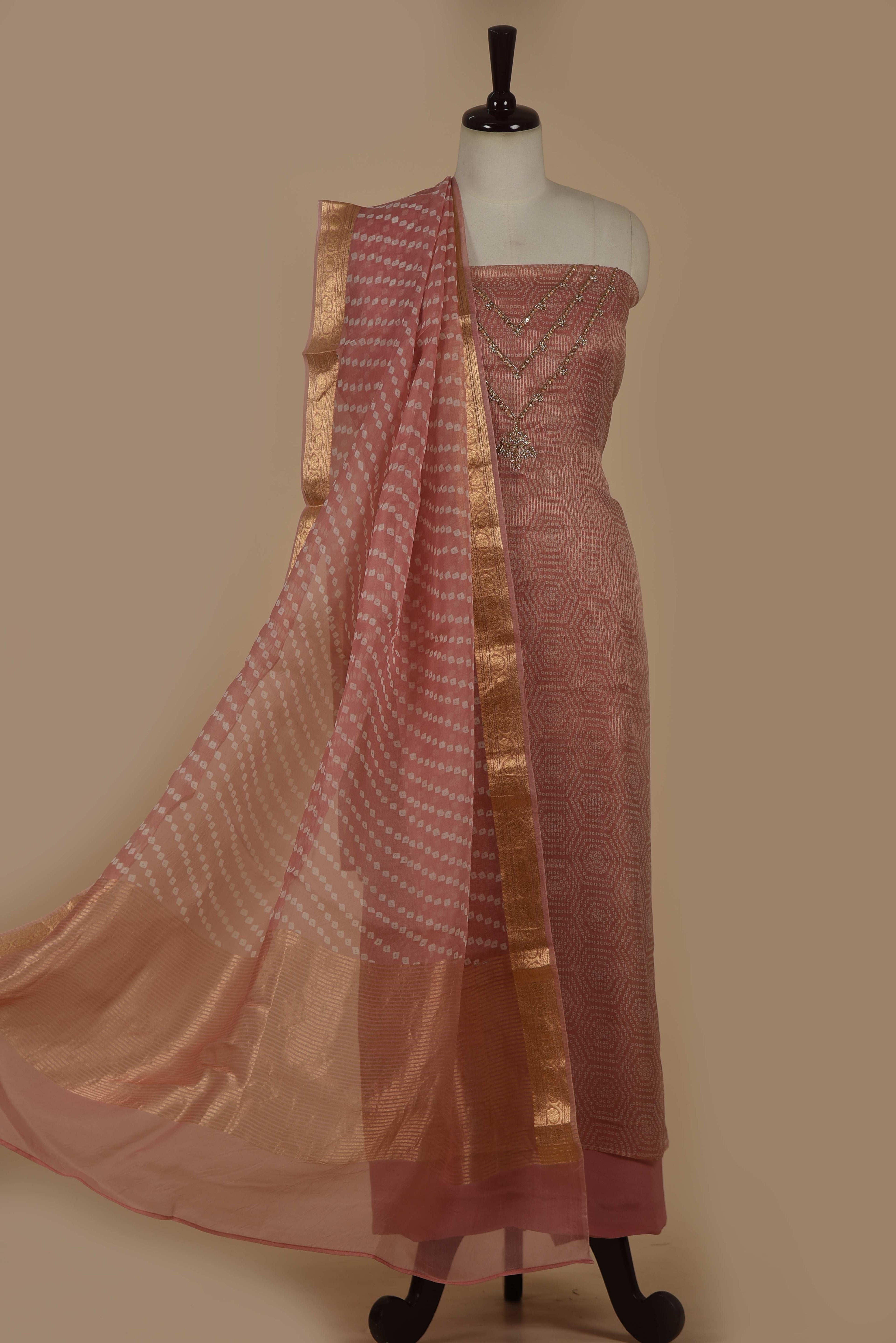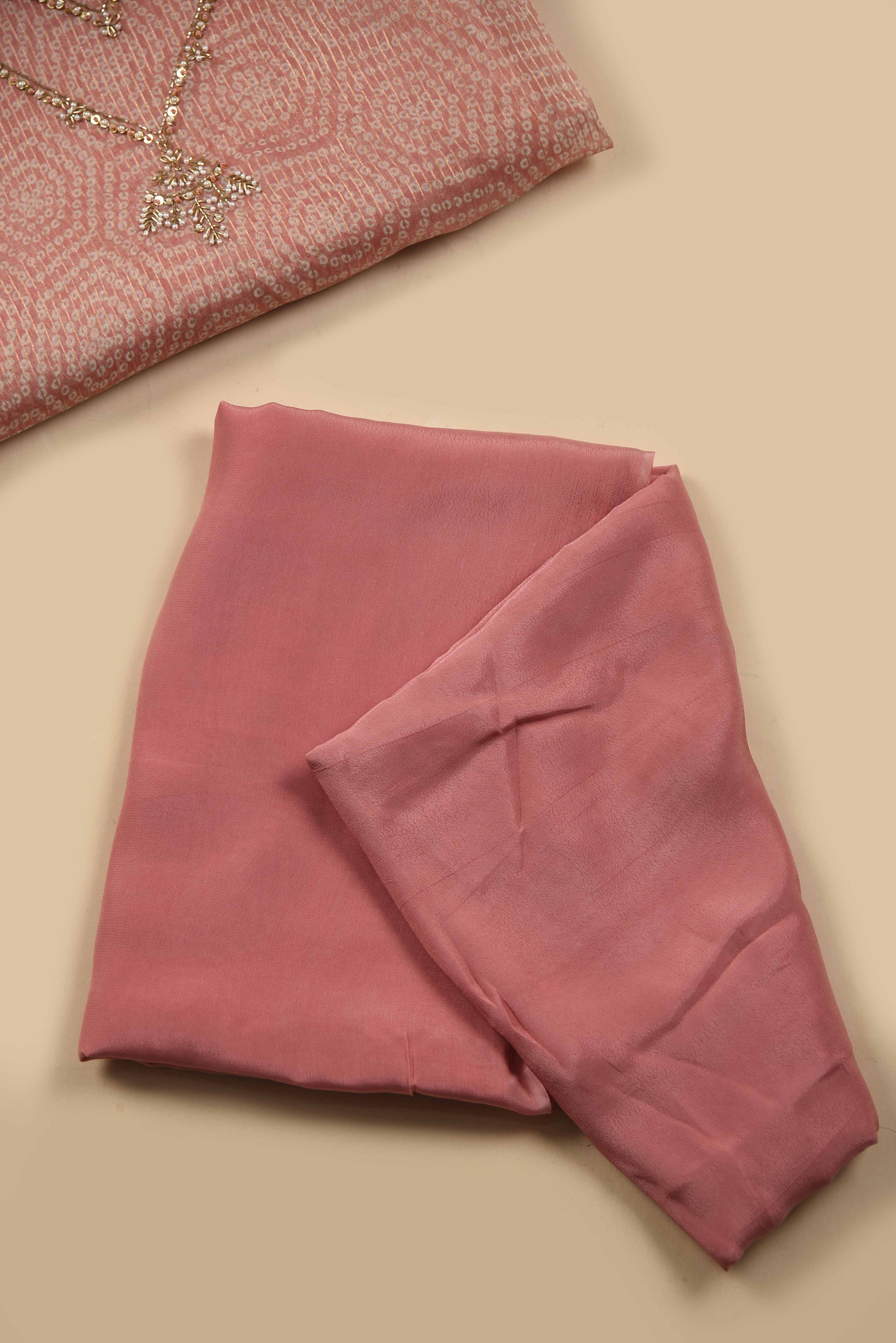 Pink Organza Silk Printed & Hand Embellished Unstitched Suit Set with Organza Silk Dupatta