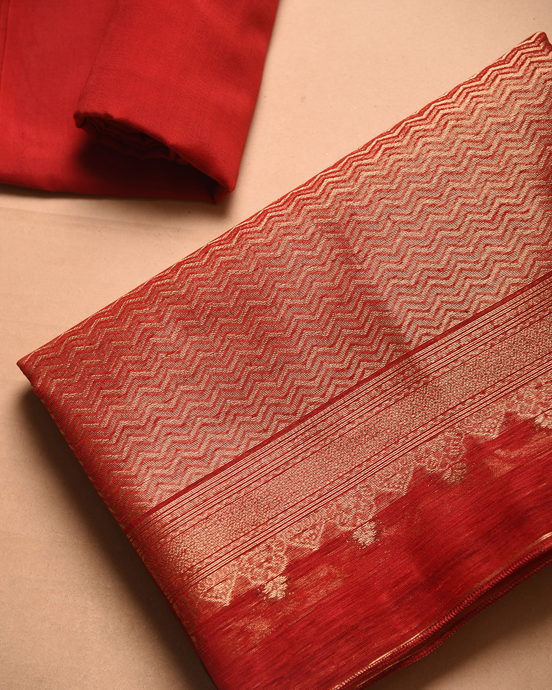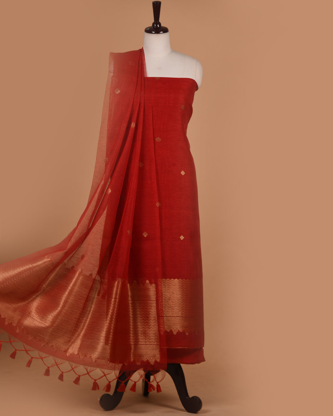 Red Linen Silk Blend Woven Unstitched Suit Fabric Set With Linen Silk Blend Woven Dupatta