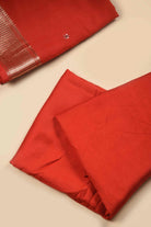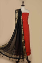 Red Silk Blend Woven With Embroidery Unstitched Suit Fabric Set With Silk Blend Dupatta