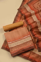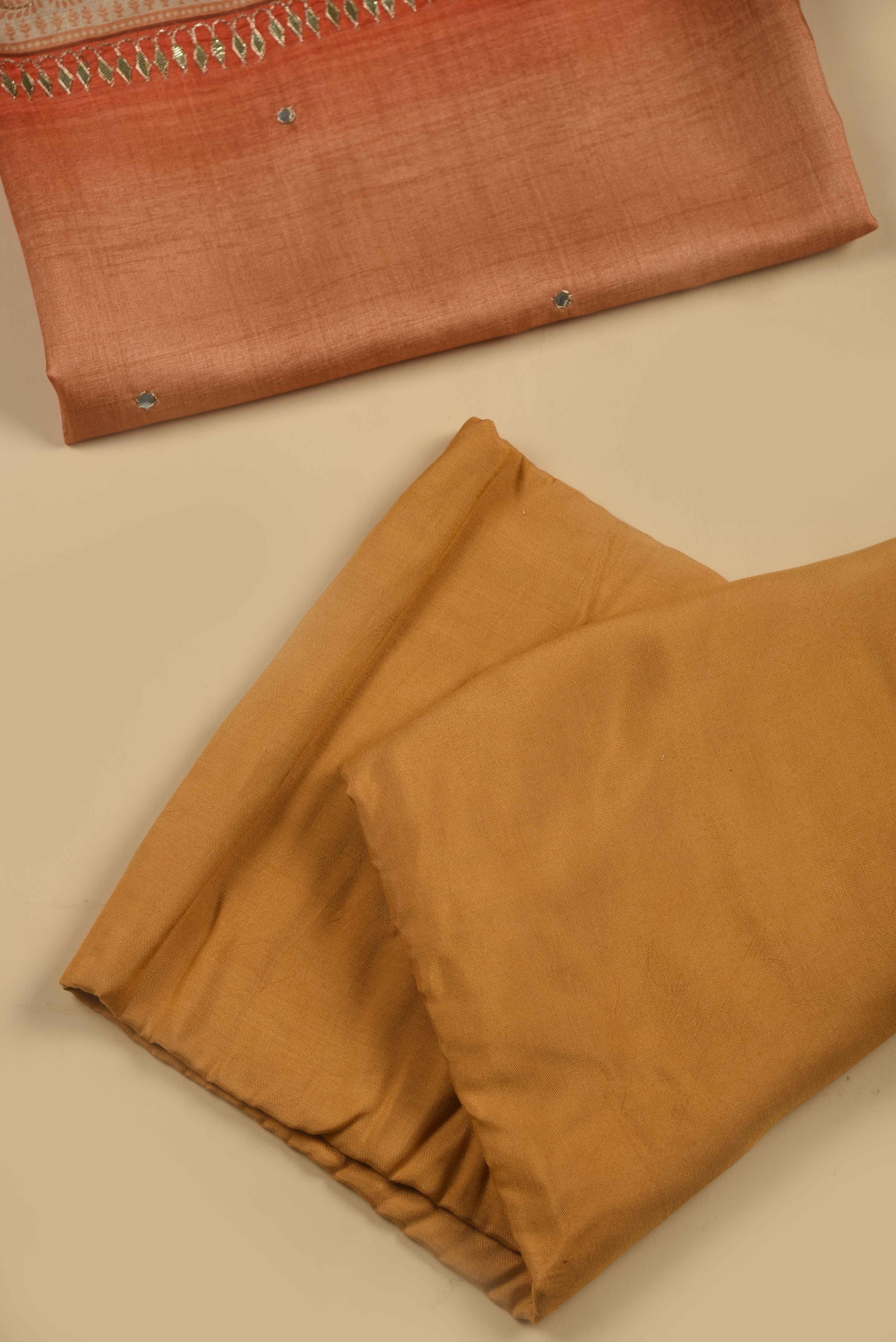 Rust Silk Blend Printed and Embellished Unstitched Suit Set with Silk Blend Dupatta