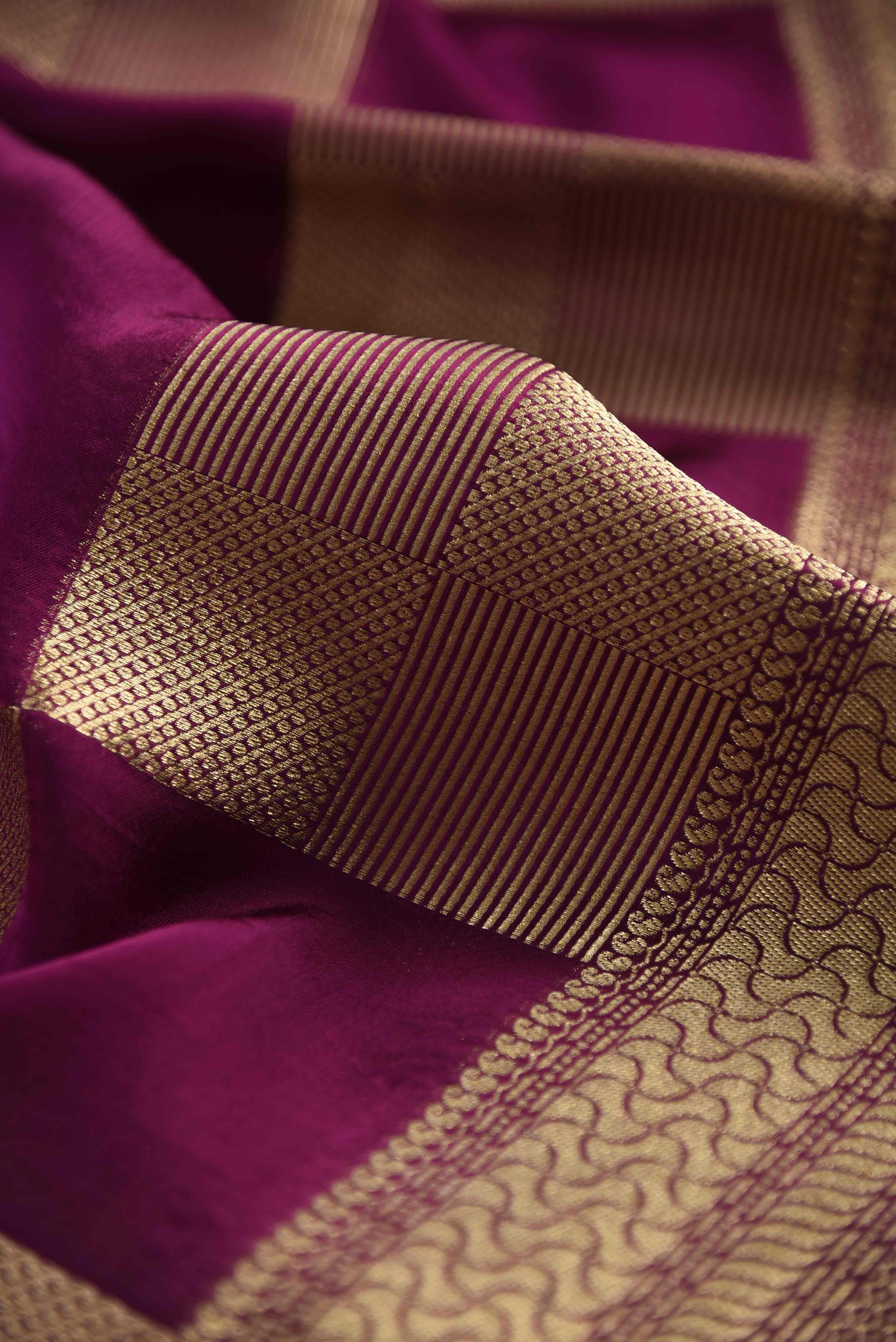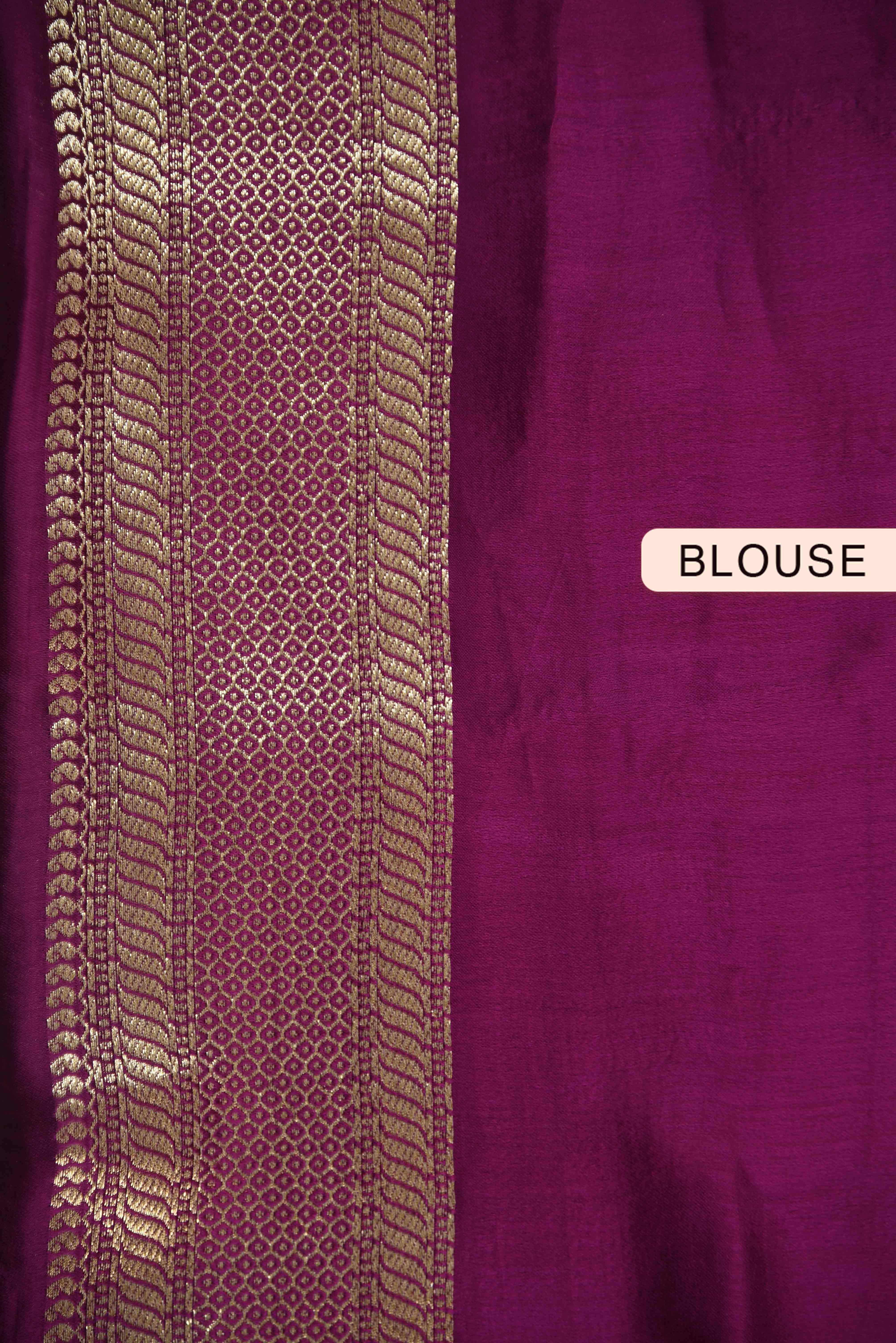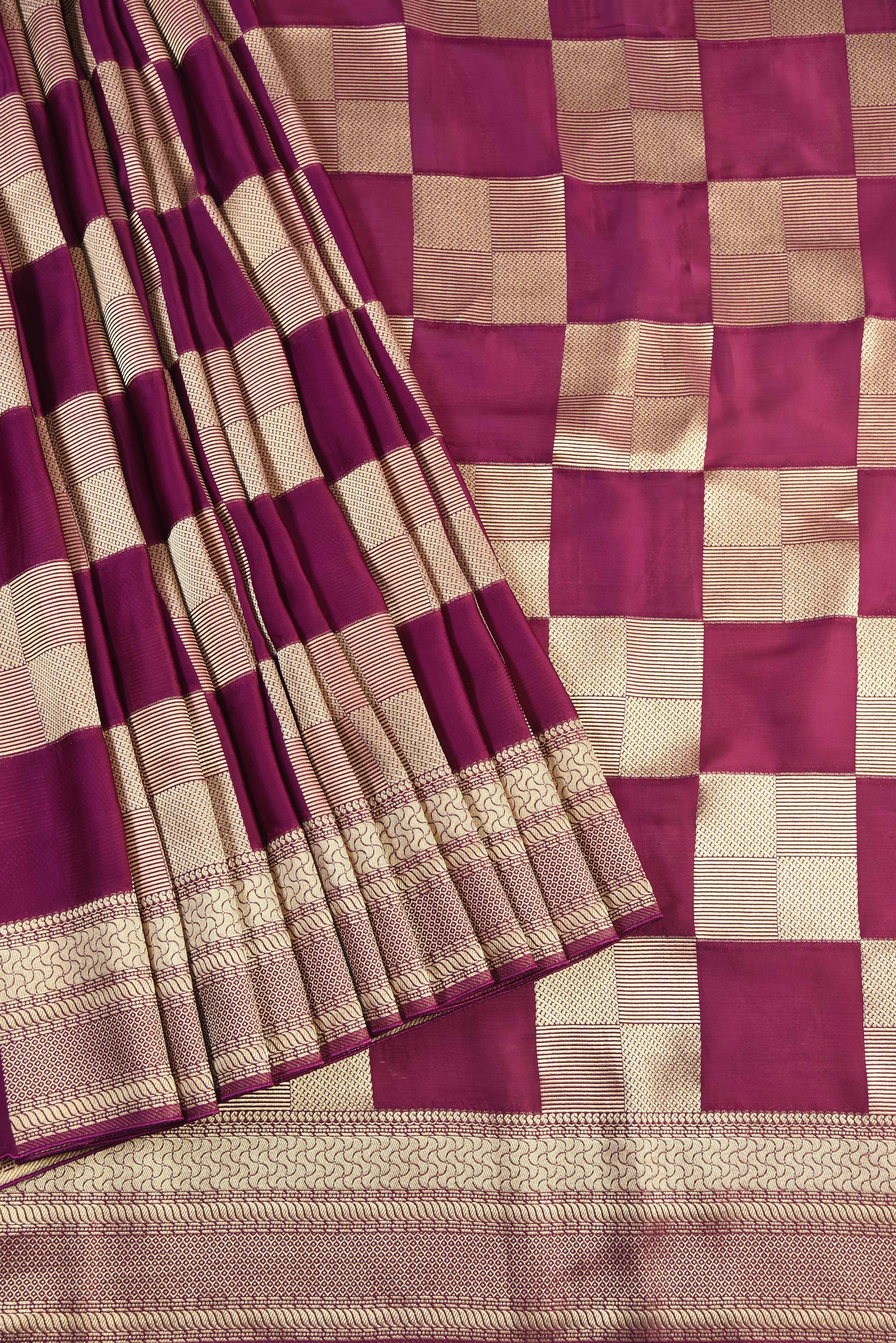 Wine Satin Crepe Woven Saree With Satin Crepe Blouse