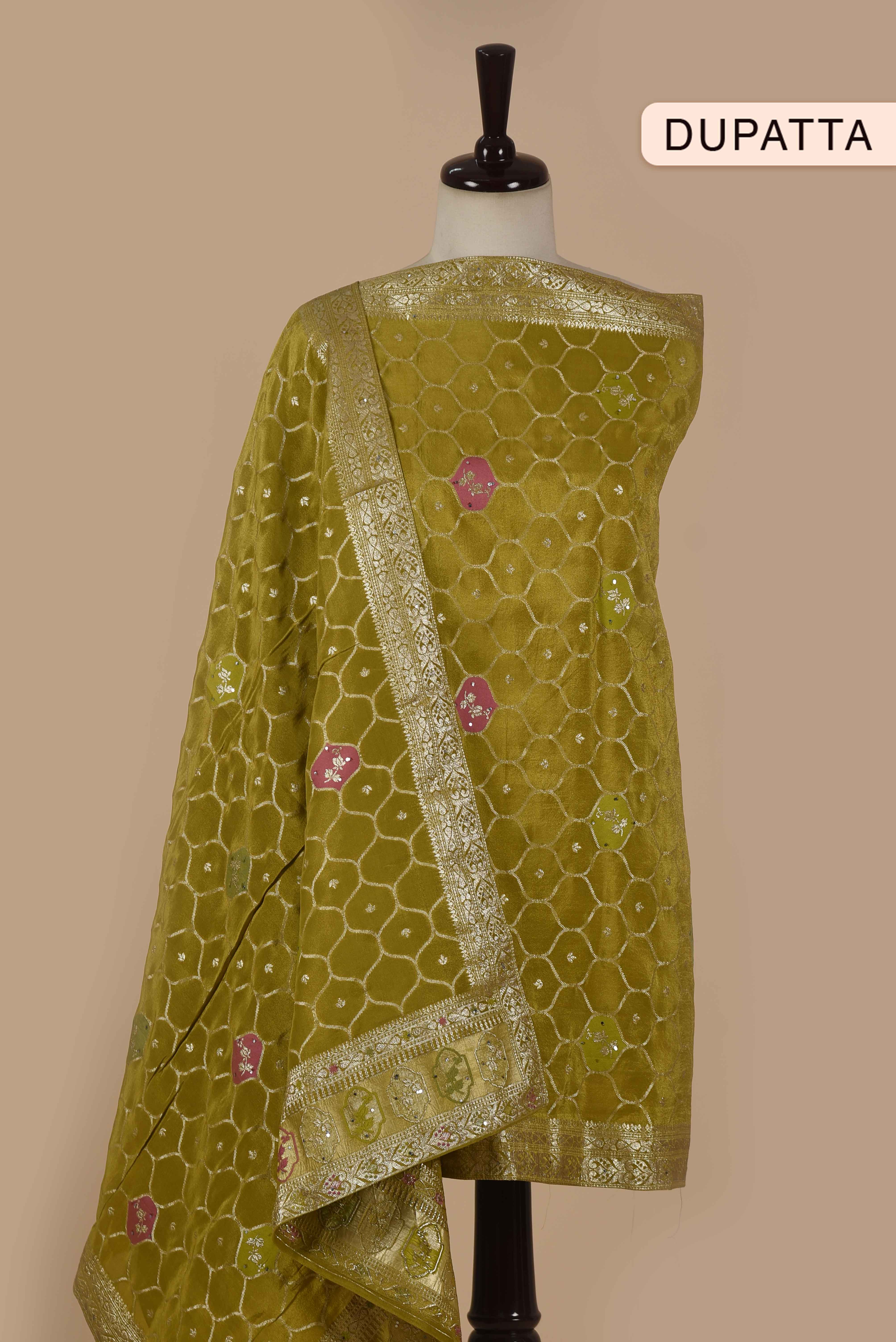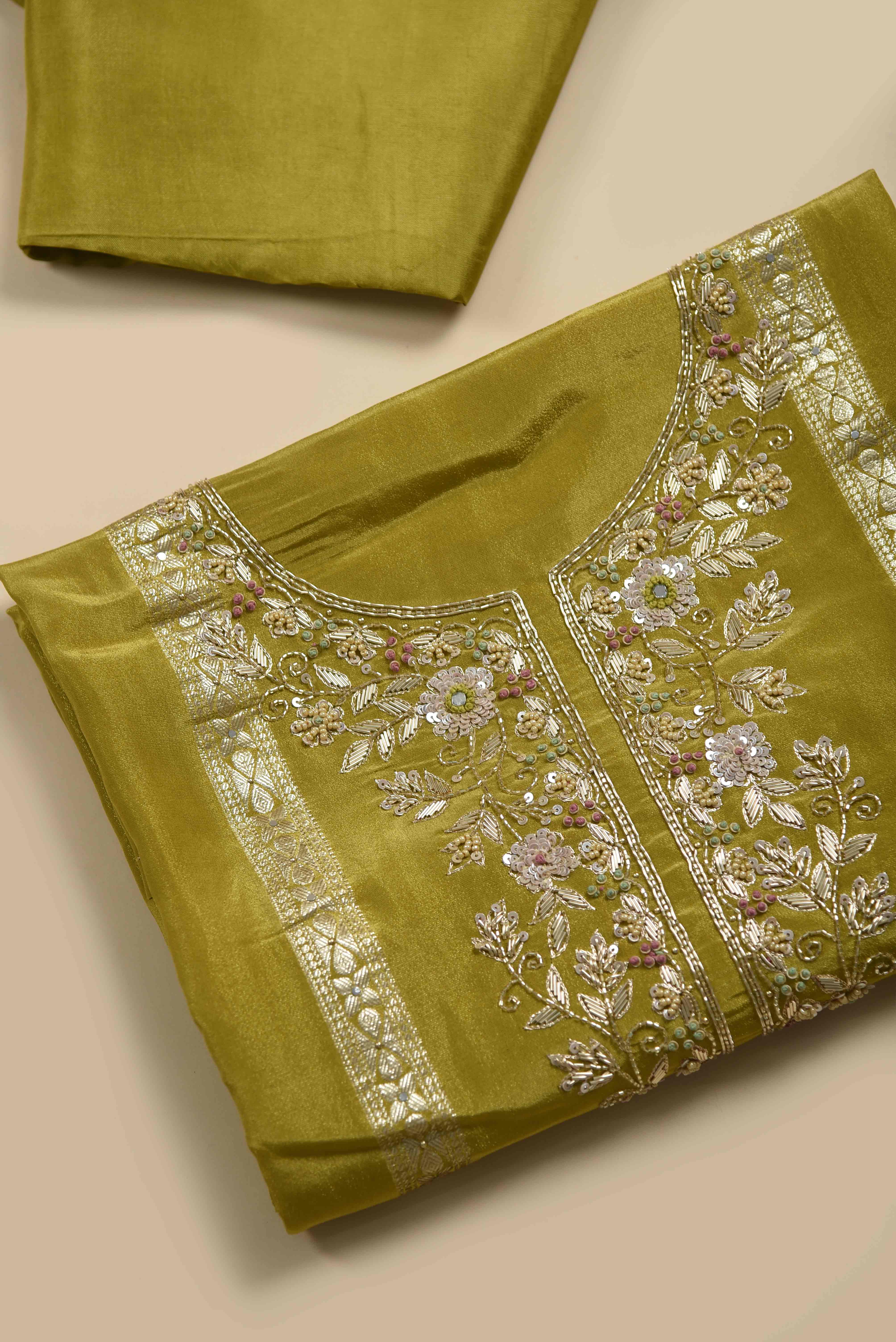 Yellow Tissue Silk Blend Hand Embellishment Unstitched Suit Fabric Set With Tissue Silk Dupatta